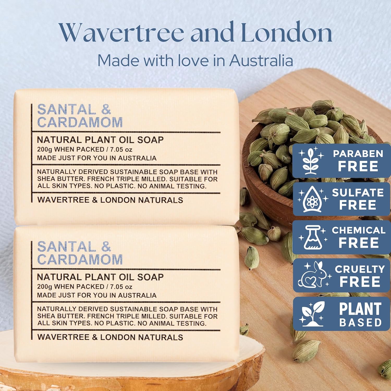 Wavertree & London Santal & Cardamon Scented Natural Soap Bars (2 Bars), 7oz Moisturizing French Triple Milled Soap enriched with shea butter - Plant Oil Bath & Body Soap Bars [100% Naturally derived]