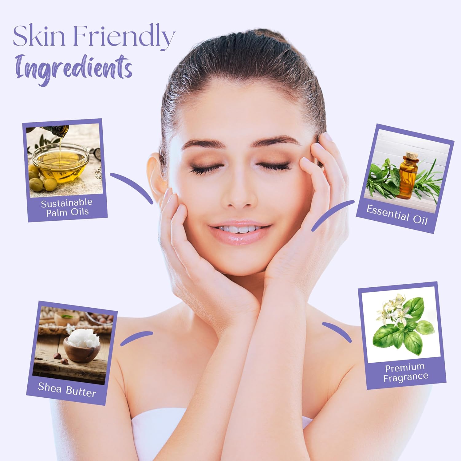 - ๐ฏ Pure Natural Fragrance: These 100% naturally derived body & bath soap bars are scented with natural fragrances made from essential oils and natural plant oils. Certified under ISO 9235, these fragrances are free from petrochemicals, solvents, dyes, synthetic ingredients, and genetically modified elements, ensuring the purest and highest quality scent.