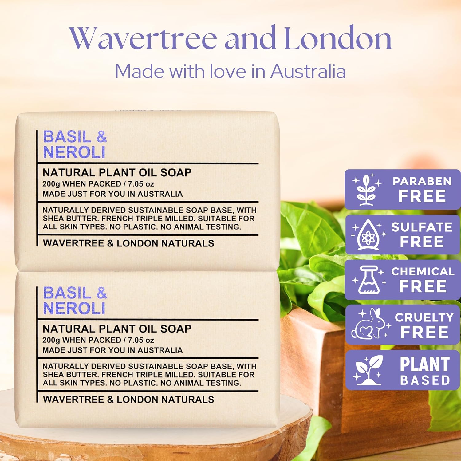 Wavertree & London Basil & Neroli Scented Natural Soap Bars (2 Bars), 7oz Moisturizing French Triple Milled Soap enriched with shea butter - Plant Oil Bath & Body Soap Bars [100% Naturally derived]