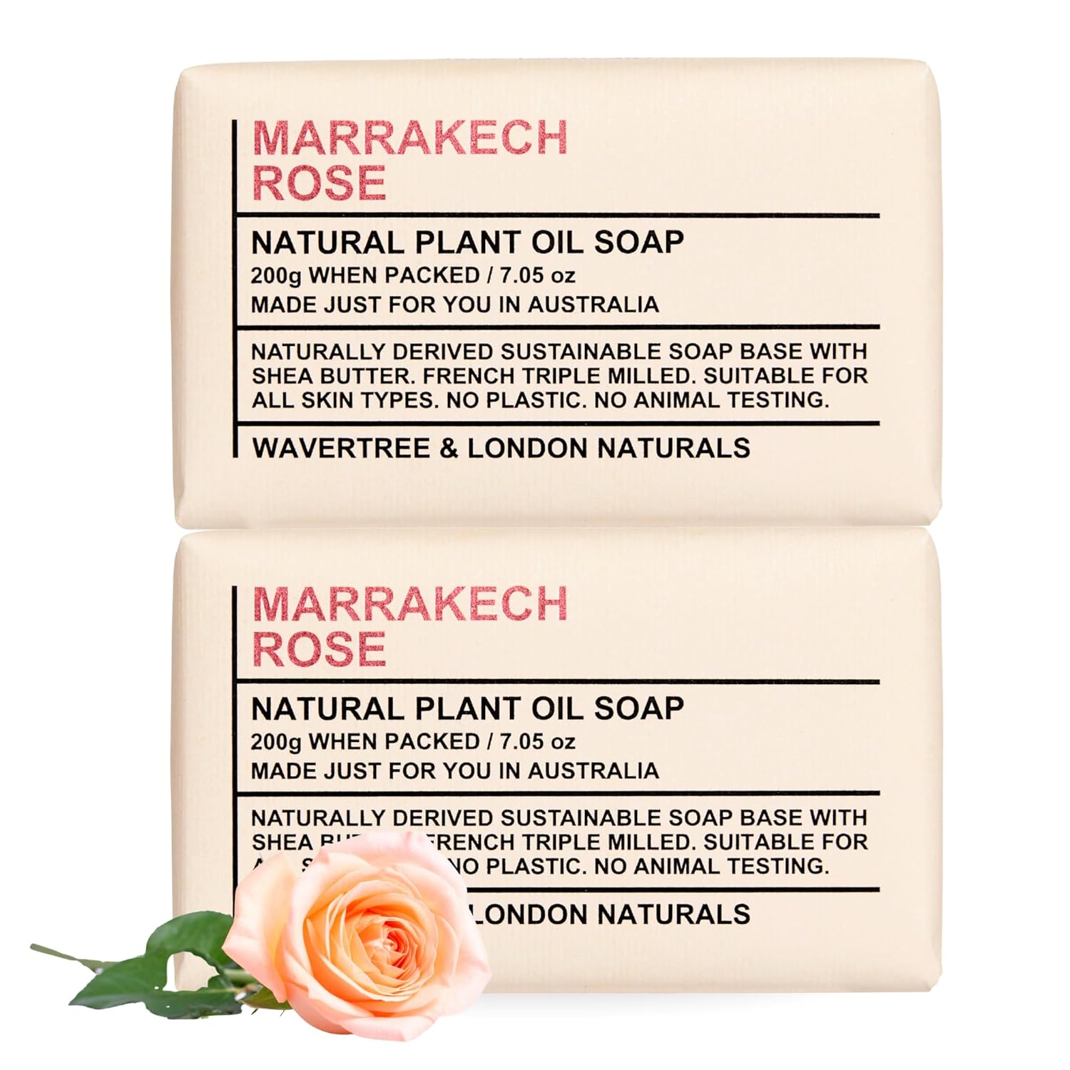 Wavertree & London Marakech Rose Scented Natural Soap Bars (2 Bars), 7oz Moisturizing French Triple Milled Soap enriched with shea butter - Plant Oil Bath & Body Soap Bars [100% Naturally derived]