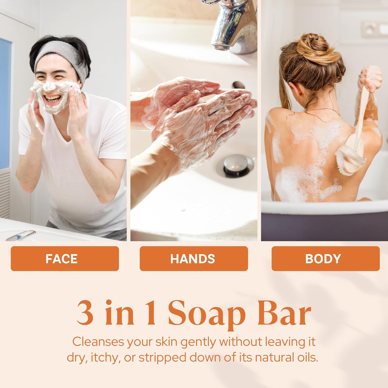 - ๐ A FULL BODY CLEAN: Our scented shea butter soap bars for men and women are hypoallergenic, vegan, and perfect for any skin type. Use our natural soap bars on any part of your body for a luxurious experience .These natural bar soaps provide a richer sensation compared to body wash or foaming hand soap. Our moisturizing natural bar soap will also fill your room with delicious fragrance.