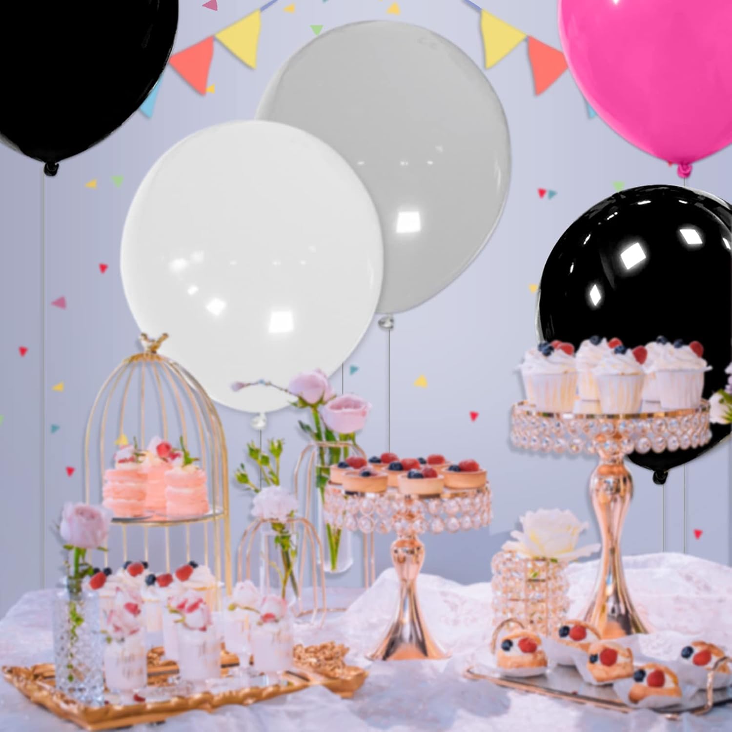 - Black 18 inch big balloons contains 32pcs and 2 rolls of silk,colors may vary due to different batch of balloons.These 18 inch black balloons can be bundled up for kids to hand clap, or make balloon arches, and can also be used for the following parties. Festivals and events like birthdays, weddings, baby showers, bridal showers, Children's Day, Labor Day, Thanksgiving, Christmas parties, anniversaries, celebrations and more, easy to create a lively party atmosphere