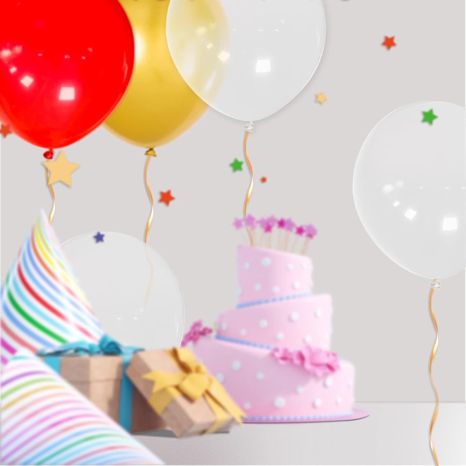 - Clear 18 inch big balloons contains 32pcs and 2 rolls of silk,colors may vary due to different batch of balloons.These 18 inch clear balloons can be bundled up for kids to hand clap, or make balloon arches, and can also be used for the following parties. Festivals and events like birthdays, weddings, baby showers, bridal showers, Children's Day, Labor Day, Thanksgiving, Christmas parties, anniversaries, celebrations and more, easy to create a lively party atmosphere