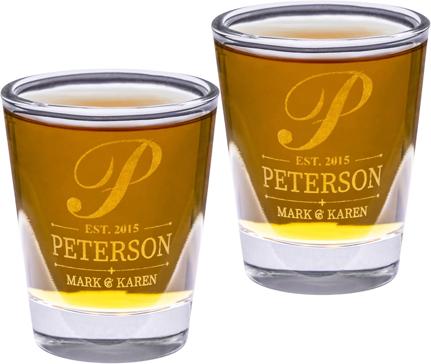 Gifts Inscribed Personalized Shot Glasses Set of 2 – Customized Glasses Drinking Set – Custom Drinking Glasses – Engraved Shot Glass Gift, Wedding, Birthday, Anniversary