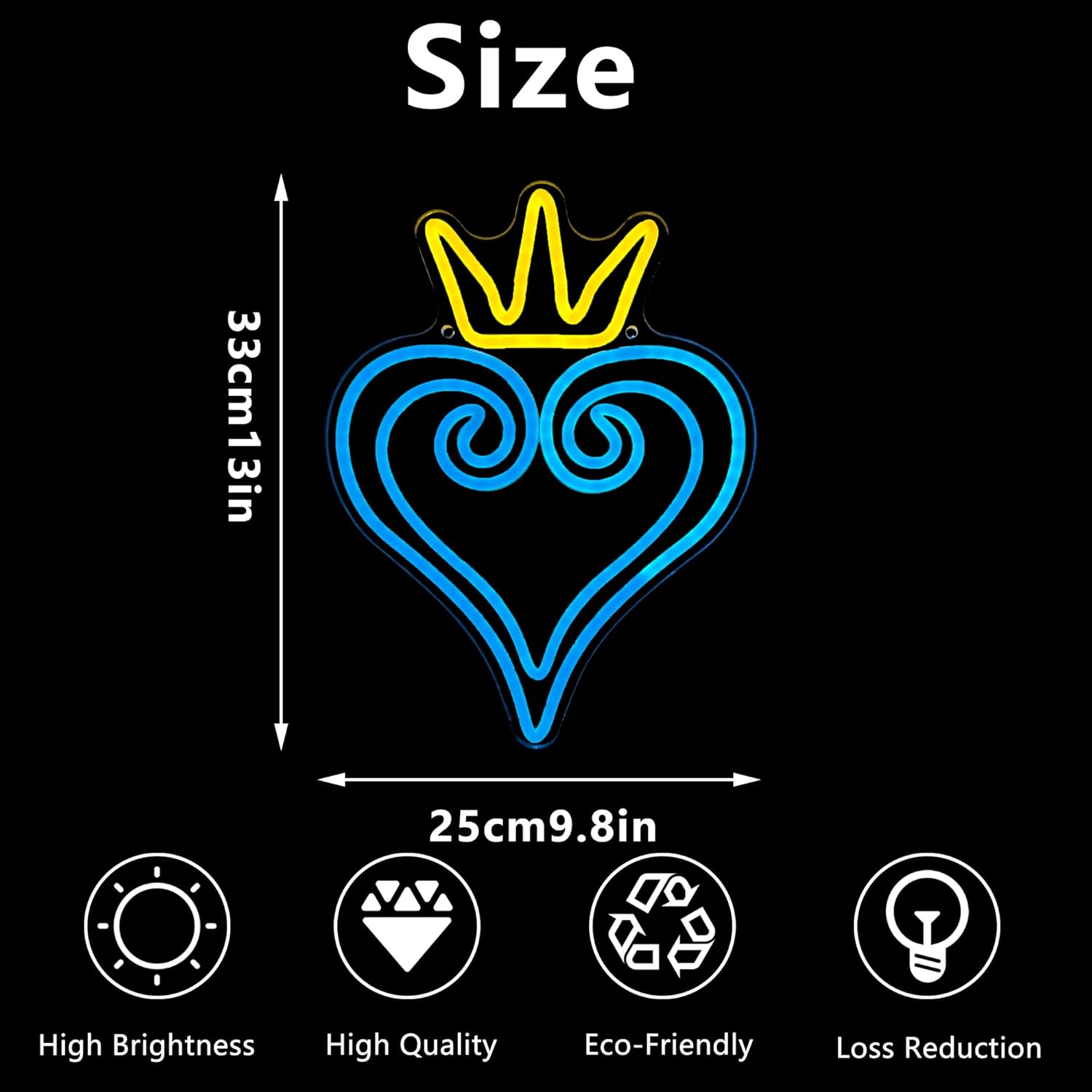 Manimo LED Kingdom and Hearts Neon Signs for Wall Decor, Anime Neon Sign, Neon Game Room Setup, USB Powered for Man Cave Game Home Party Bedroom Room Teenager Gamer Birthday Gifts(9.8 * 13in)