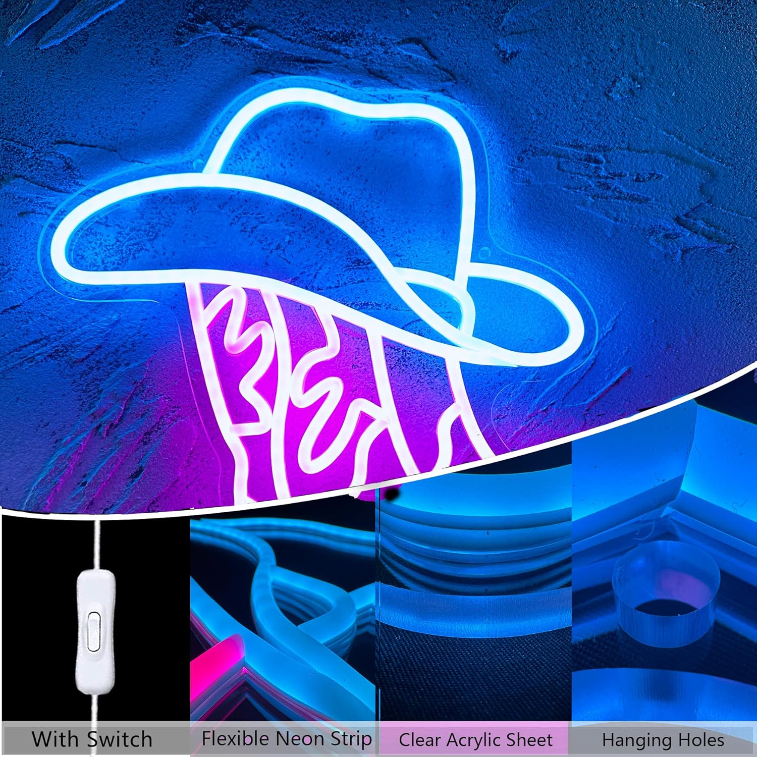 - Cowboy Boot and Hat Neon Sign: Are you looking for retro stylish room decor? This retro cowboy hat neon light is bright and vibrant, unique style design, vibrant and bright colors, perfect for dorm room, game room, bedroom, shop wall night light decoration.