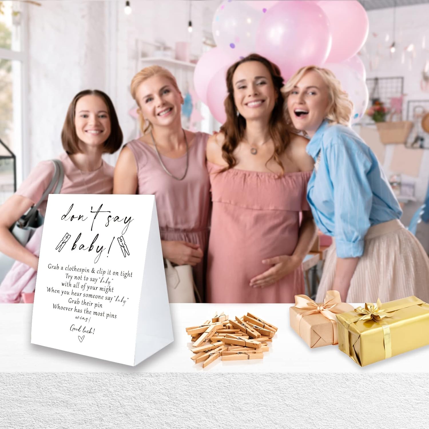 BEUFSE Don't Say Baby Game for Baby Shower Clothespin Game, One 5x7 Coated Paper Sign and 50 Natural Clothespins, Minimal Style, Gender Neutral -NDSBB08