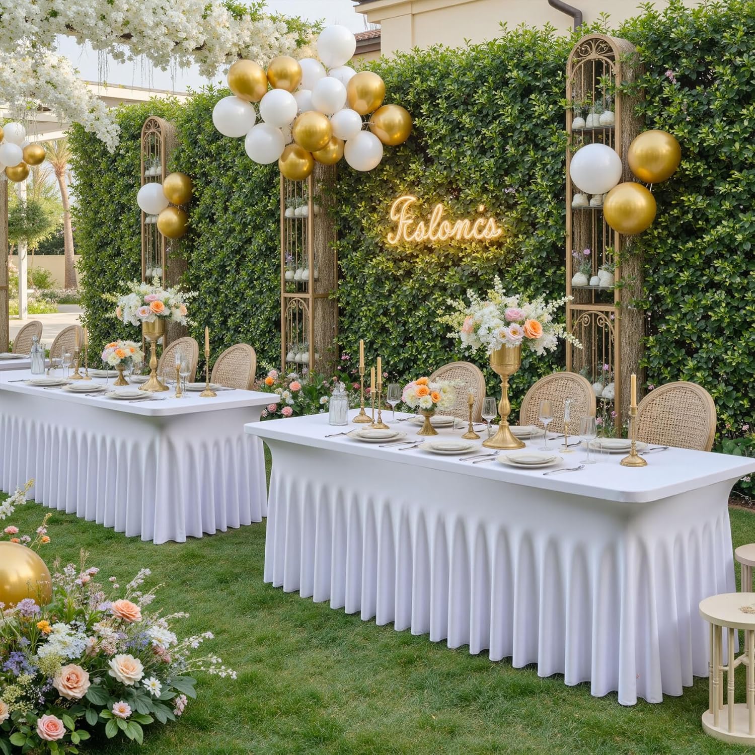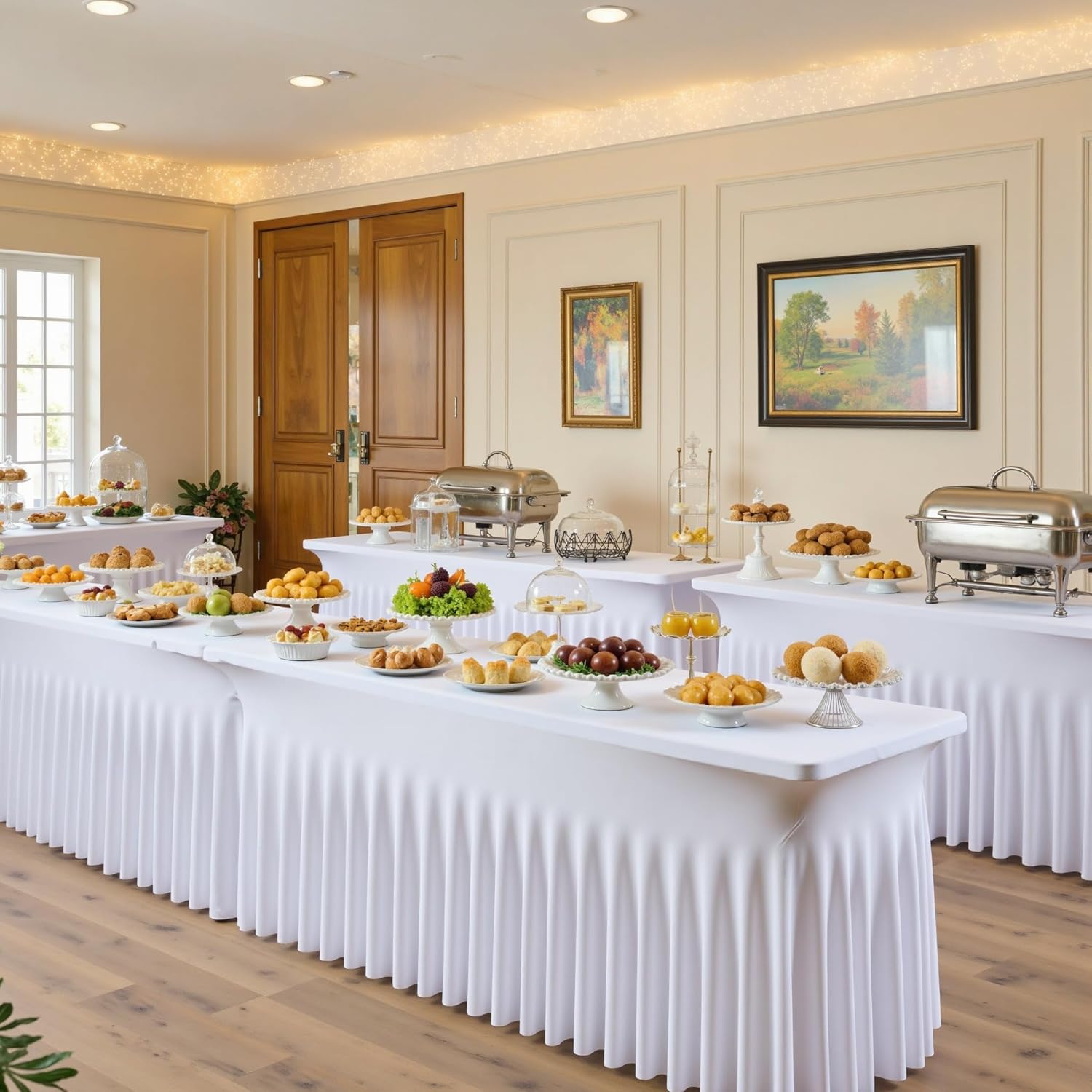 - ✱ 1. You will receive 2 Pack white wavy spandex table covers fitted for 4 foot rectangle tables. Manteles de mesa de tela para fiestas.