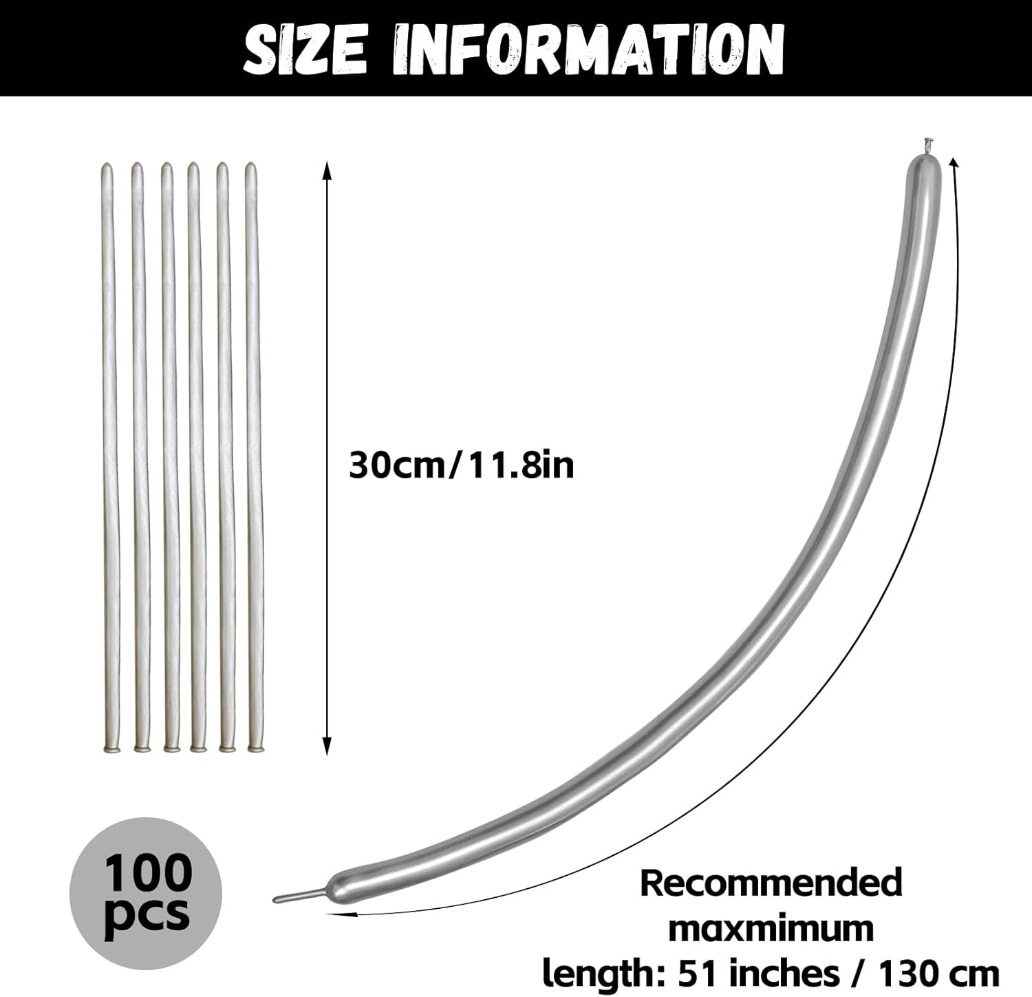 - THE PACKAGE INCLUDES:100 PCS long balloons, to meet your various decoration needs. long balloons can be inflated or filled with helium. Size: 12 inches before inflation, 53-55 inches after inflation, very suitable for professional balloon artists.