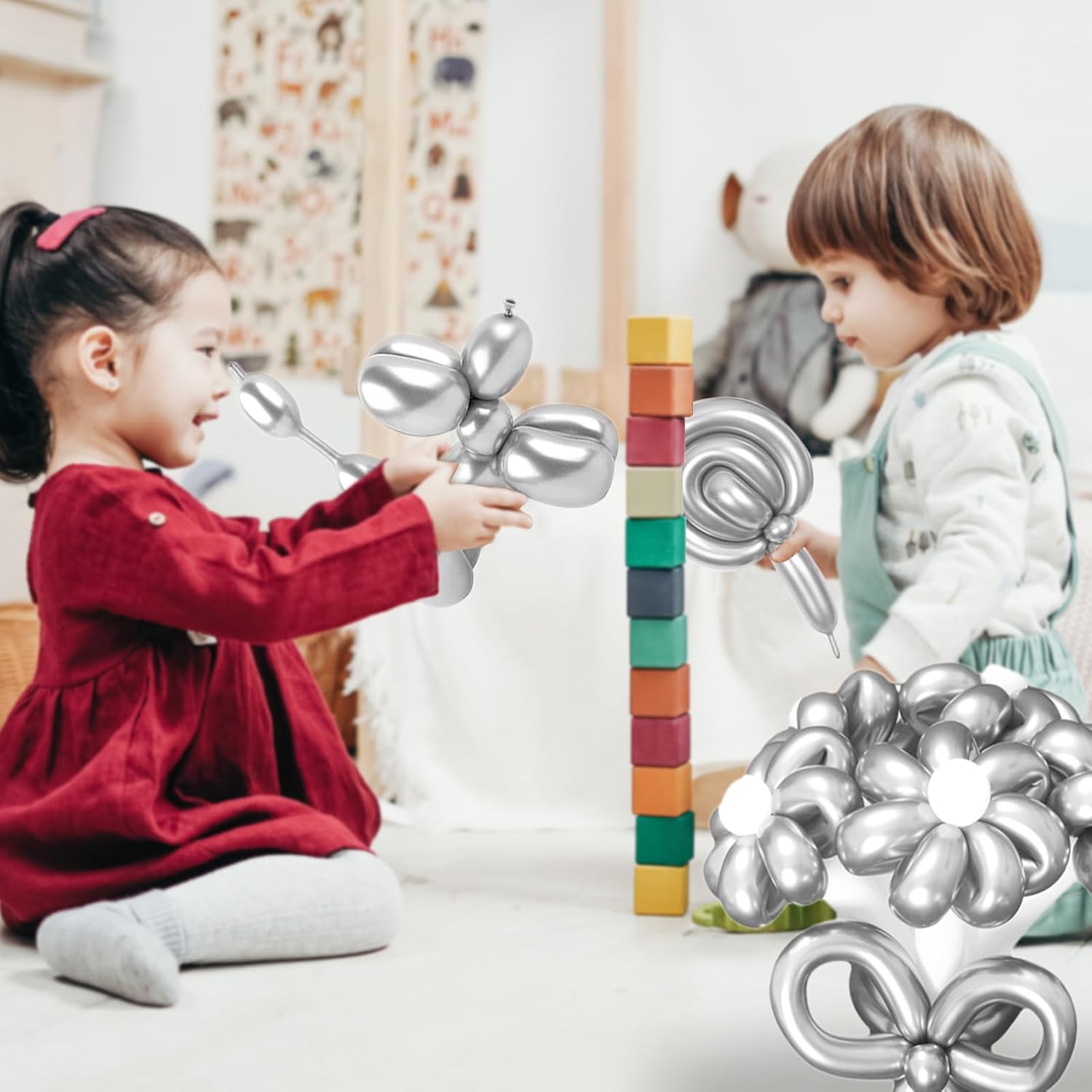 Metallic Long Balloons Art Kit for Twisting, Chrome 260pcs Skinny Modeling Balloons Supplies for Birthday Party Wedding Festival Decorations