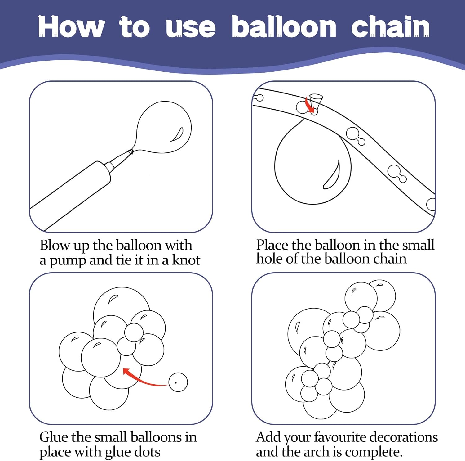 - Using these navy blue balloons of different sizes and the auxiliary accessories included in the package, you can easily make a perfect navy blue balloons arch, these ribbon dispensing adhesive chains make it easy to make balloon arch garlands, making the balloons kit easy to use . You can fully use your imagination and make balloon decorations of different shapes.