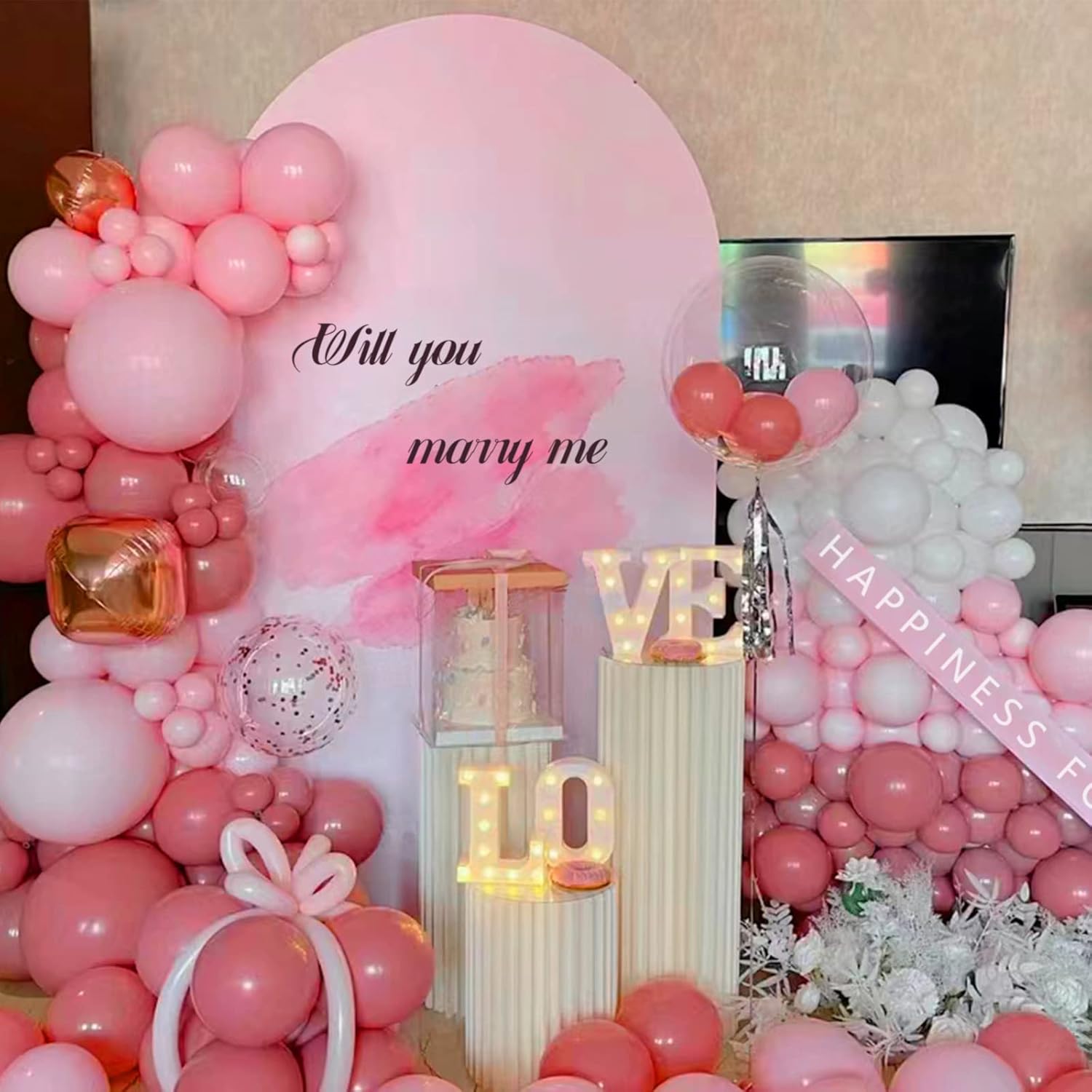 - Our balloon garland kit Included 134pcs retro rose red latex Balloons: 18inch 4pcs, 12inch 35pcs, 10inch 35pcs, 5inch 60pcs and 1glue, 1 ribbon, 1 balloon chain. retro rose red balloons in different sizes Can meet your different party needs.