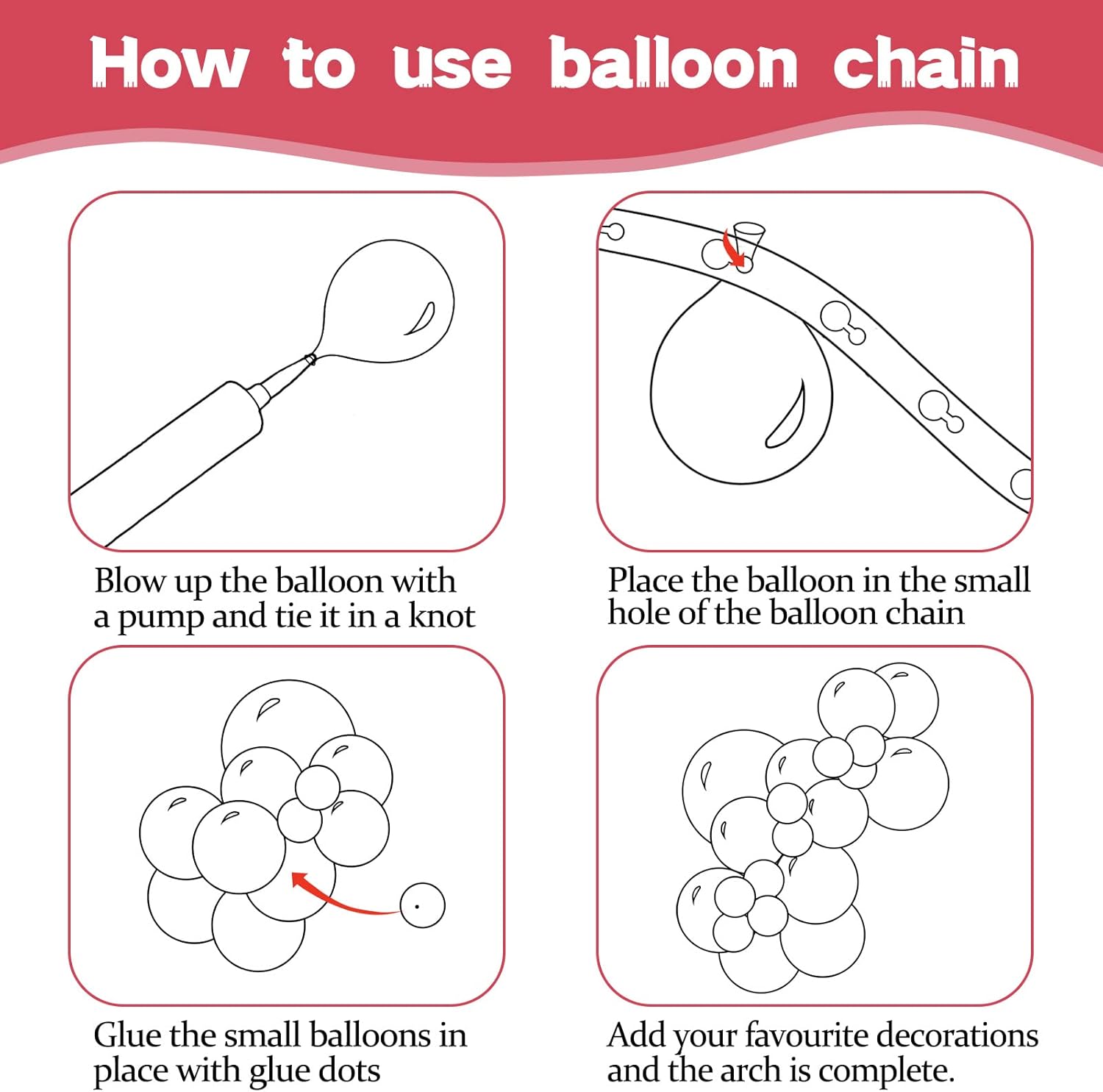 - Using these retro rose red balloons of different sizes and the auxiliary accessories included in the package, you can easily make a perfect retro rose red balloons arch, these ribbon dispensing adhesive chains make it easy to make balloon arch garlands, making the balloons kit easy to use . You can fully use your imagination and make balloon decorations of different shapes.