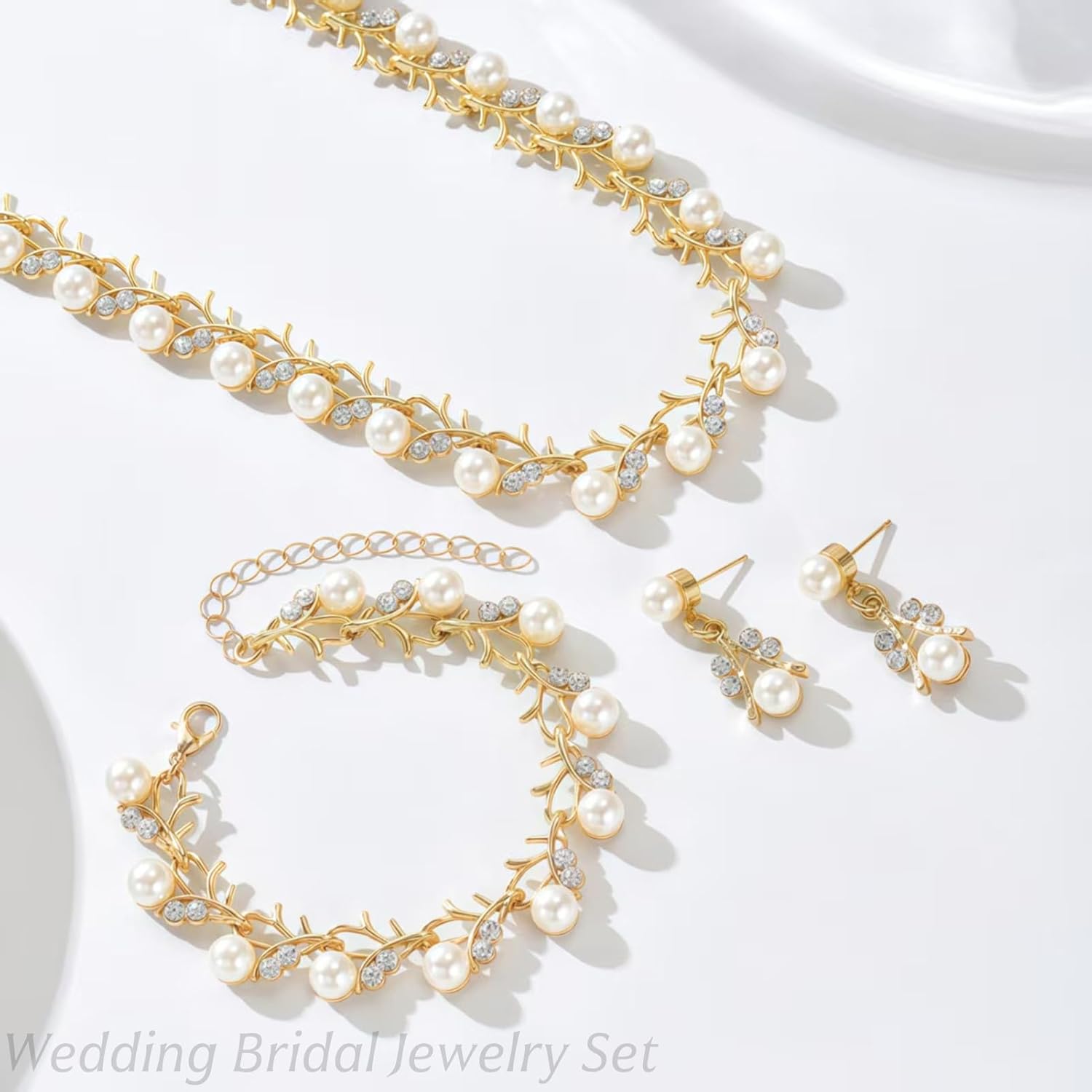- Material:golden women's jewelry set is made of pearl and alloy. Rhinestone wedding necklace with bridal earrings and bracelet, unique design, well made. Bridal jewelry sets for weddings will add more appeal and glamour to your look