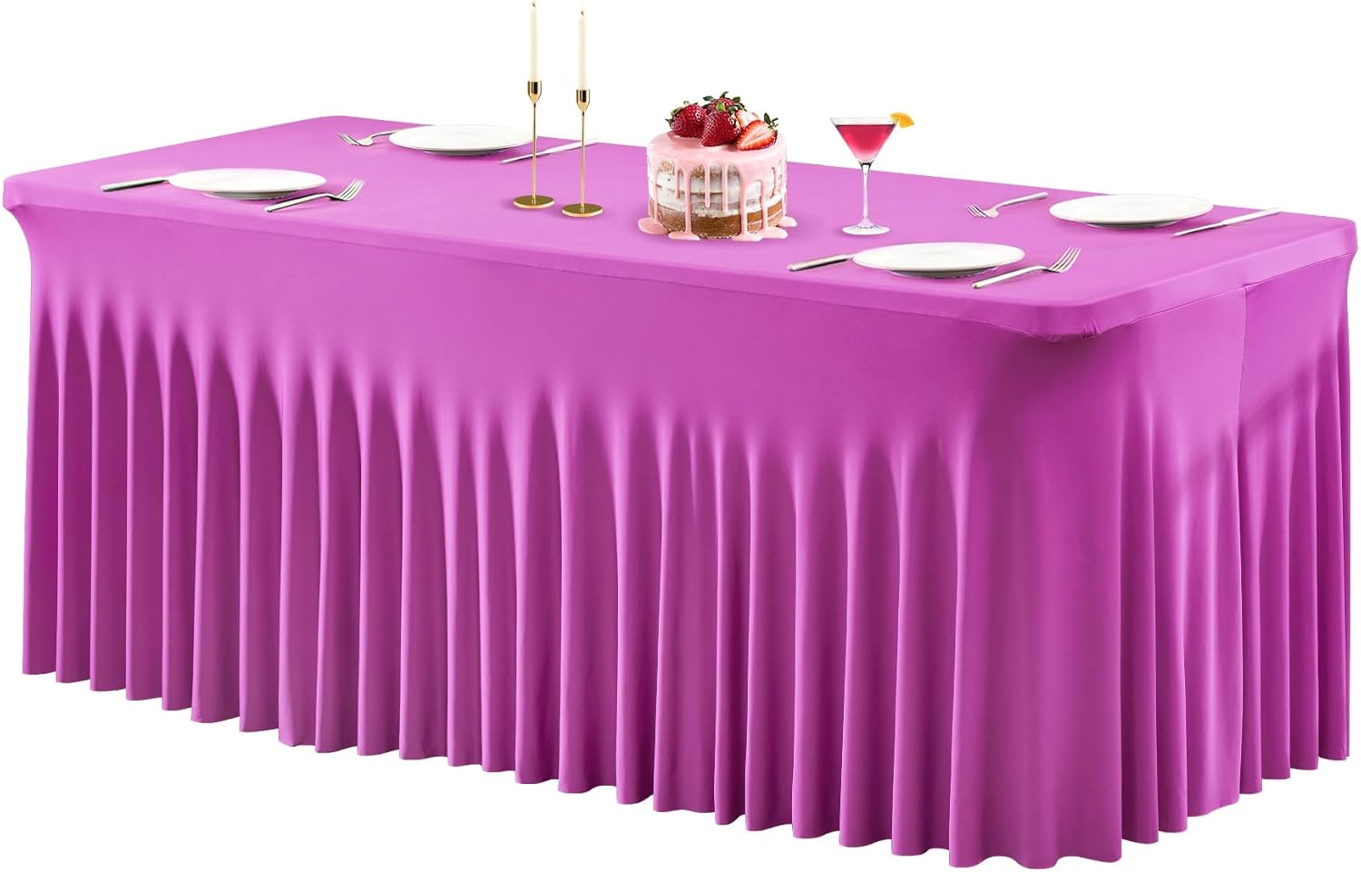 - 🎀 Elegant Design: The fuchsia table cloth rectangle features a floor-length design which can easily conceals unattractive table legs, extra supplies, power cords, or other items stored underneath. This stretchy table cloth with skirt shows pleats to make your table look more elegant.