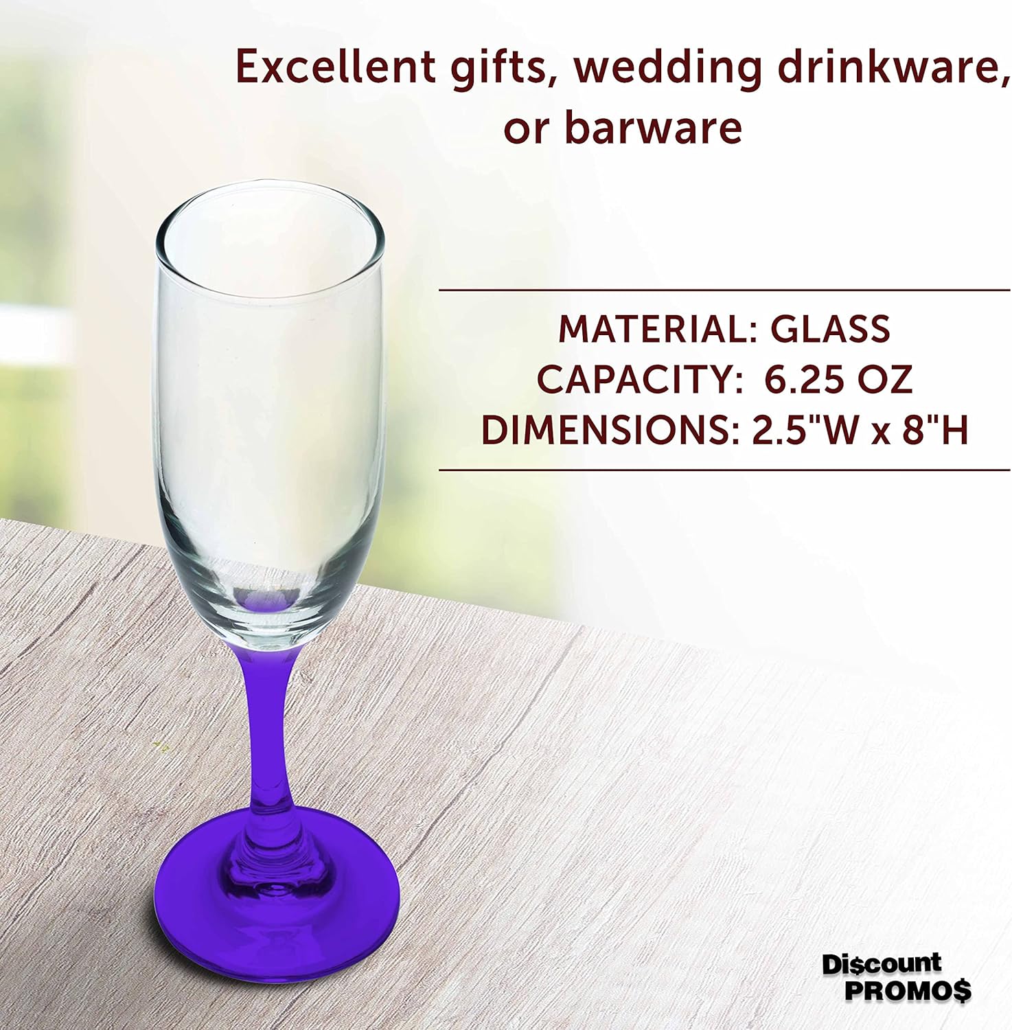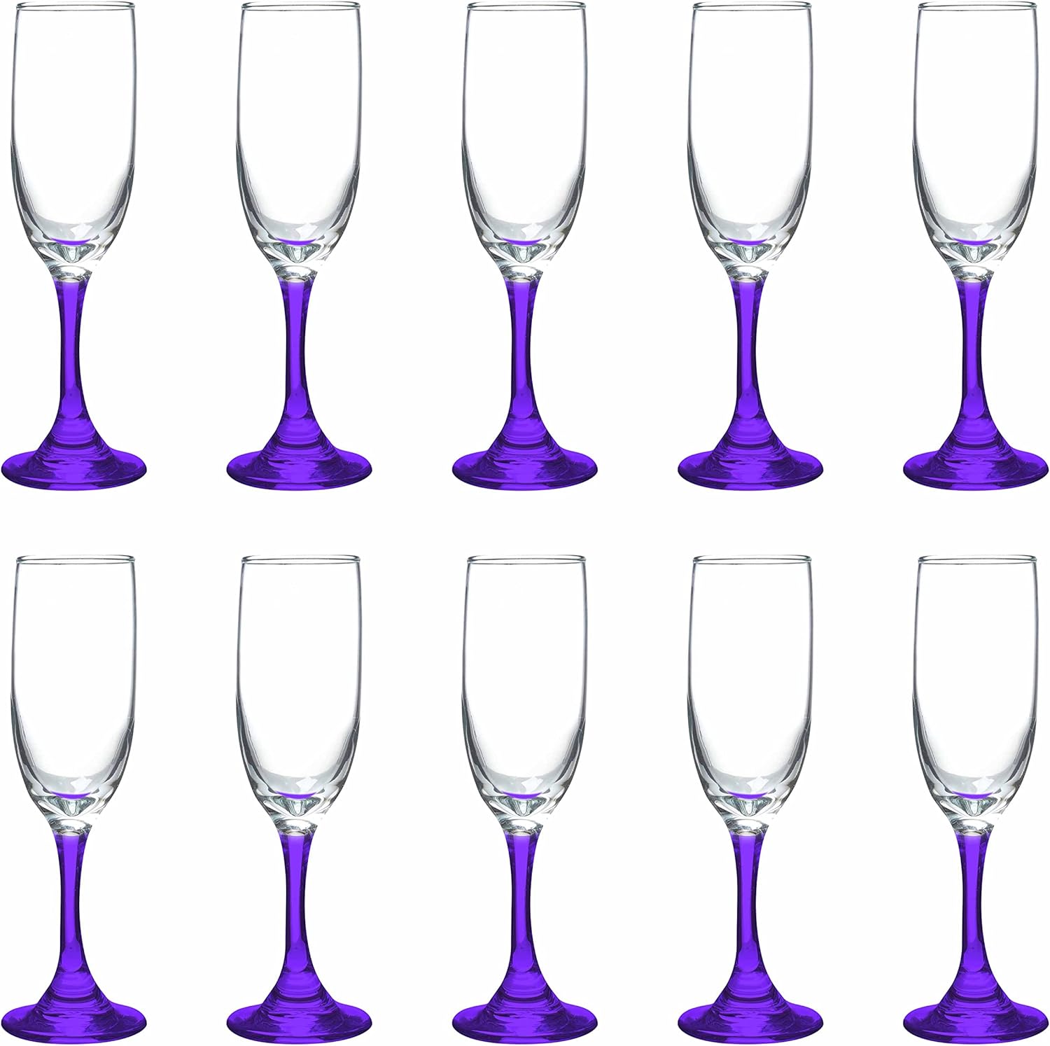 DISCOUNT PROMOS Premiere Champagne Flutes 6.25 oz. Set of 10, Bulk Pack - Elegant Drinkware for Weddings, Events, & Promotional Gifts - Purple