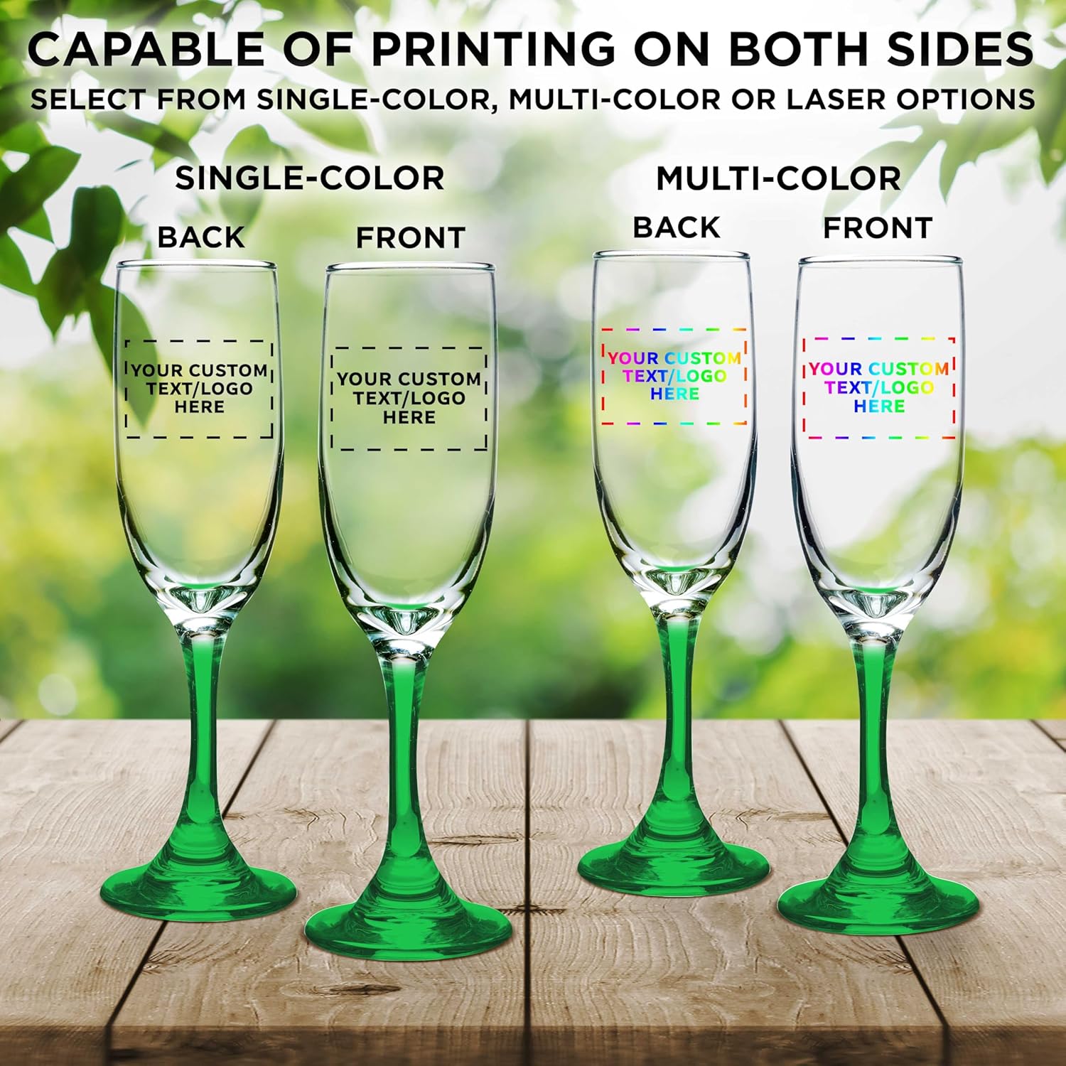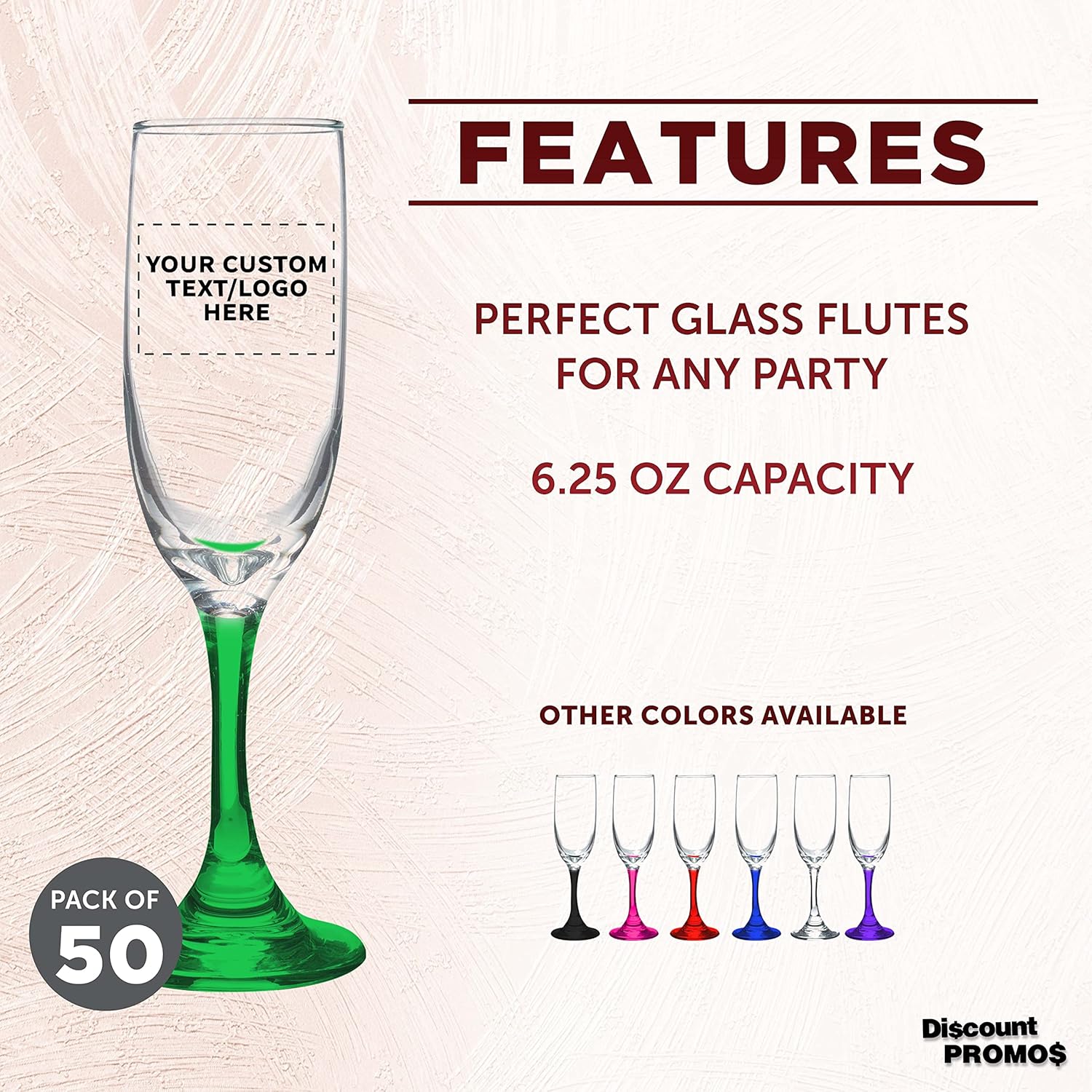 DISCOUNT PROMOS Custom Premiere Champagne Flutes 6.25 oz. Set of 50, Personalized Bulk Pack - Elegant Drinkware for Weddings, Events, & Promotional Gifts - Green