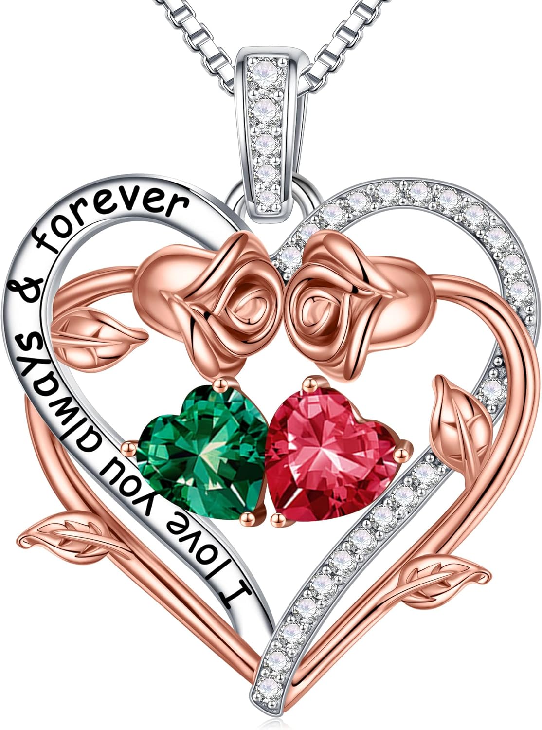 - GIFTS FOR WOMEN: The double heart necklace represents the two of you forever tightly held together. This unique rose heart birthstone necklace is the perfect gift for women, mother, grandmas, aunts, sisters, friends, wives