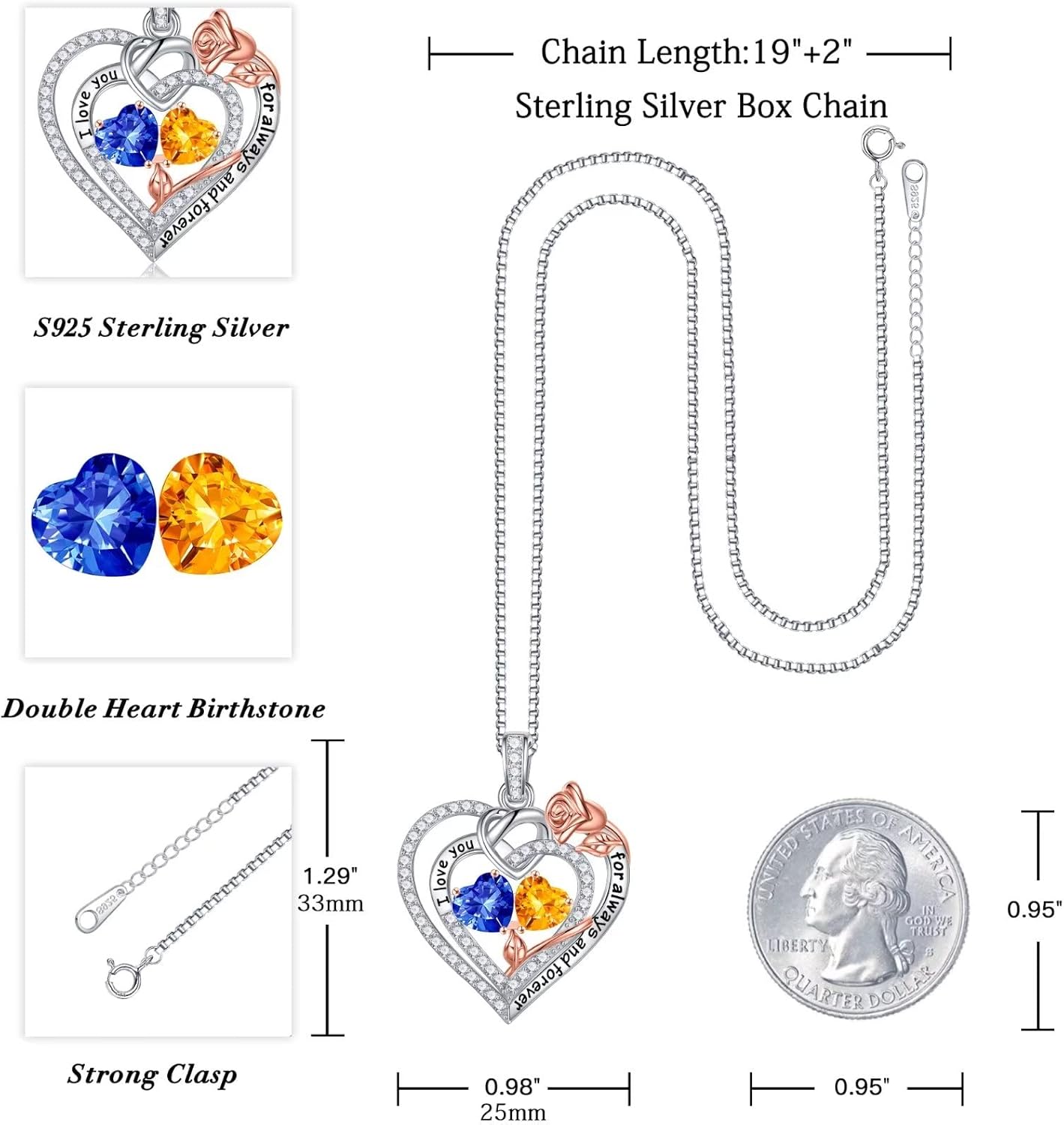 • MEANING: The heart pendant engraved with the words "I love you for always and forever" symbolizes your forever love for the special women in your life. When she wear this heart necklace, she will never forget the long and deep love you shared. Perfect gifts for your mom, grandma, wife, girlfriend or any other people your love on Mother's Day, Birthday, Christmas, Valentine's Day or other special days.
