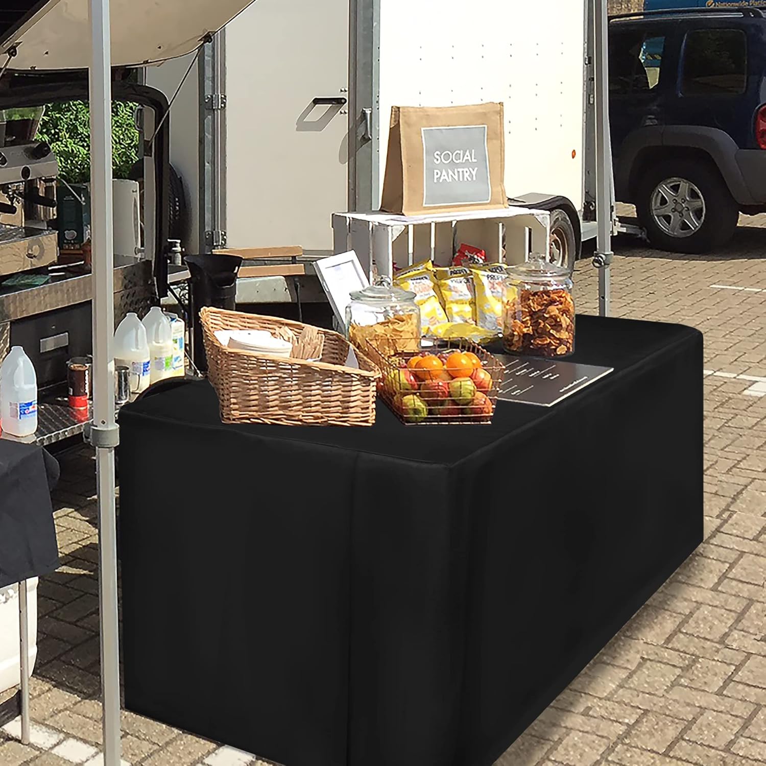 HolidayIdeas 2 Pack Fitted Tableclothes - 60 x 30 Inch - Black Rectangle Tablecloths for 5 Foot Tables, Fabric Table Cover Protector for Parties, Holiday Dinner, Wedding, Trade Show