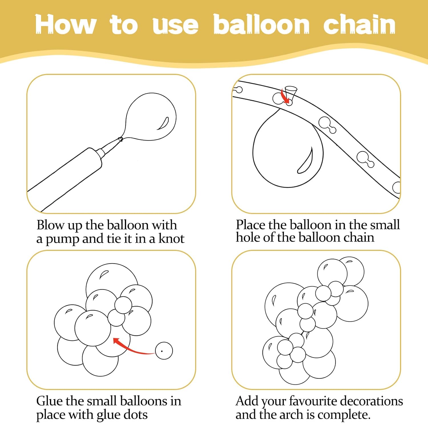 - ♥:Using these chrome gold balloons of different sizes and the auxiliary accessories included in the package, you can easily make a perfect gold balloons arch, these ribbon dispensing adhesive chains make it easy to make balloon arch garlands, making the balloons kit easy to use . You can fully use your imagination and make balloon decorations of different shapes.