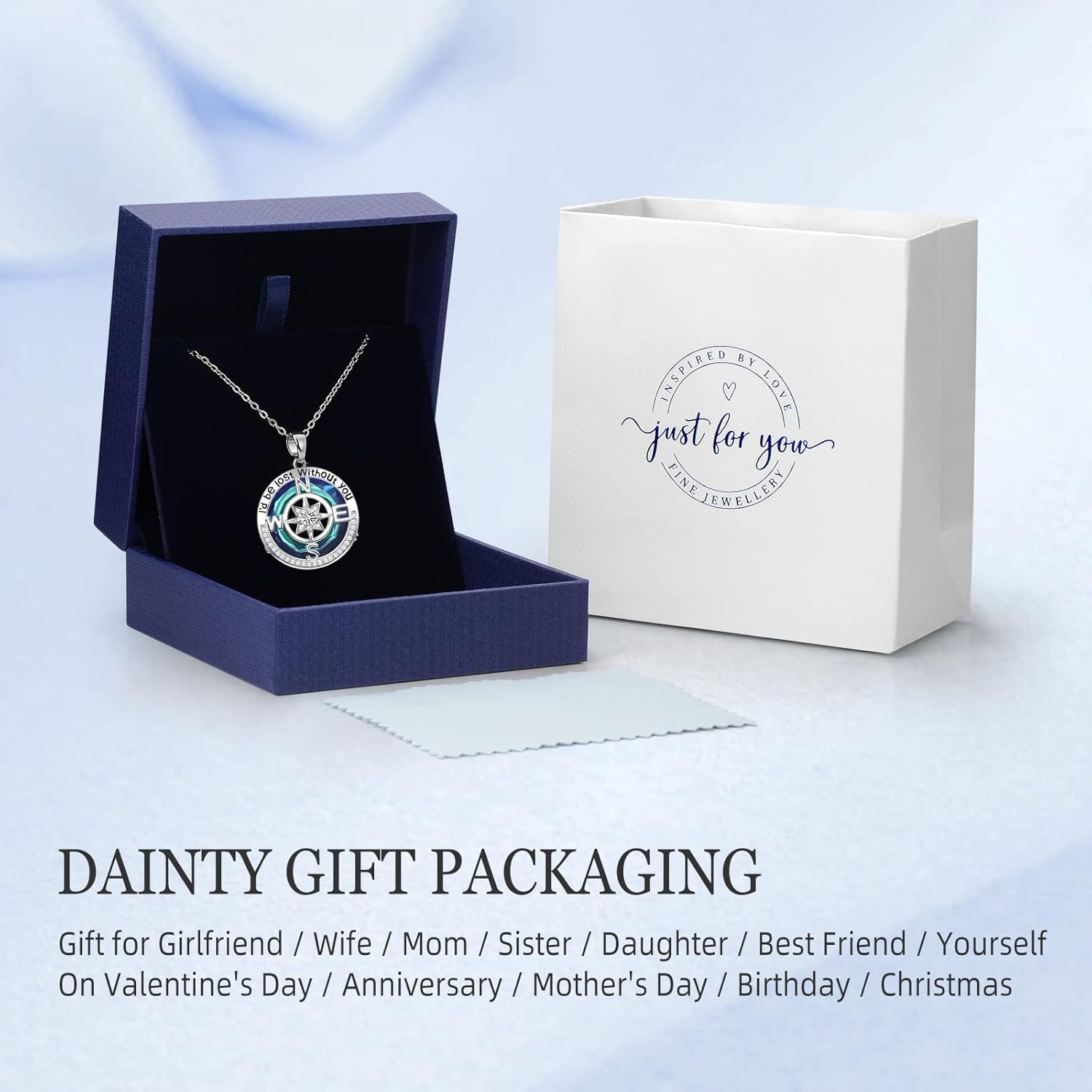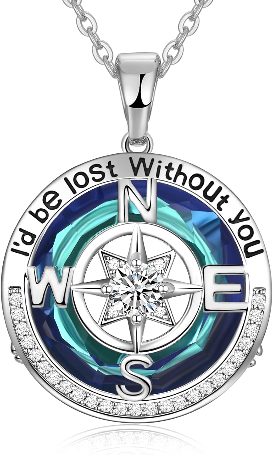 - COMPASS SAPPHIRE DESIGN: The compass symbolizes eternal love, signifying that love acts like a compass, leading us through difficulties and towards happiness. With blue crystals, this silver necklace is even more elegant