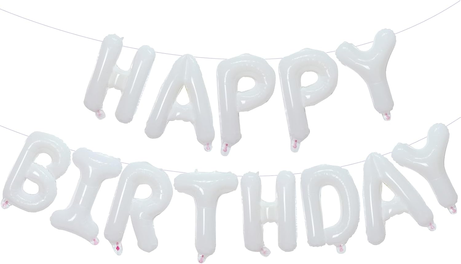 KALOR White Happy Birthday Balloons Banner, 16 Inch Mylar Foil Letters Balloon Sign for Women, Men, Boys & Girls Kids Birthday Decorations Photo Backdrop