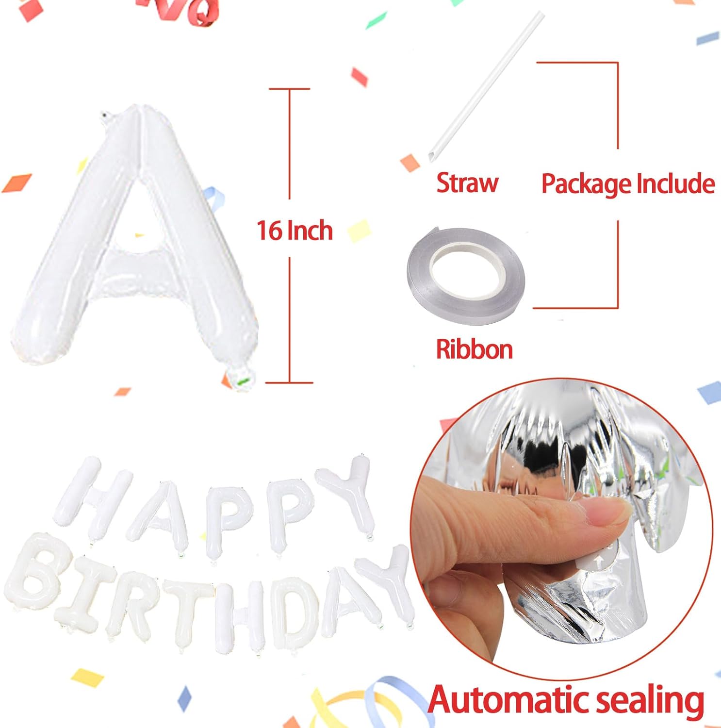 - Complete Kit with Straw & Ribbon: Your all-in-one 16 inch happy birthday balloon set includes 13 letters, a blowing straw, and a hanging ribbon for immediate party decorating.