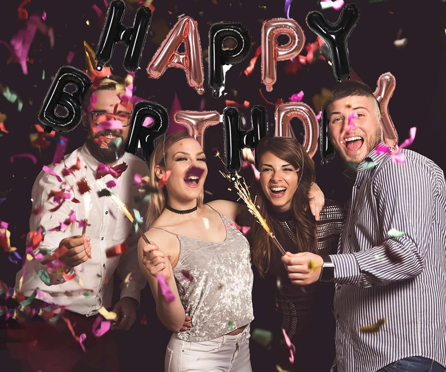 KALOR Black and Rose GoldHappy Birthday Balloons Banner, 16 Inch Mylar Foil Letters Balloon Sign for Women, Men, Boys & Girls Kids Birthday Decorations Photo Backdrop