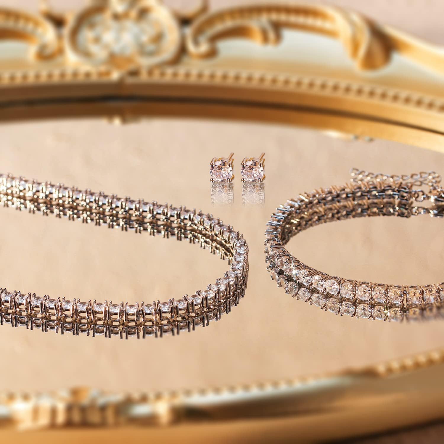 - Design: This tennis jewelry set is inspired by the classical design, simple but never go out of style. Wearing a prom dress, formal gown or casual wear, matching this elegant necklace and earrings bracelet set, it will make you more eye-catching in any spccial occasions.