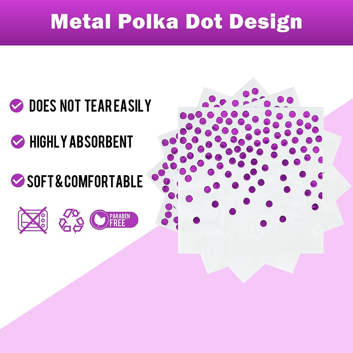 - 2.【Foil Polka Dot Design】:These white purple party paper plates and napkins are all designed with purple gold foil polka dots,which is very stylish and beautiful with bright and attractive colors,everyone will like this elegant design,and have a good time!NOTE:Please don't microwave the plates and napkins