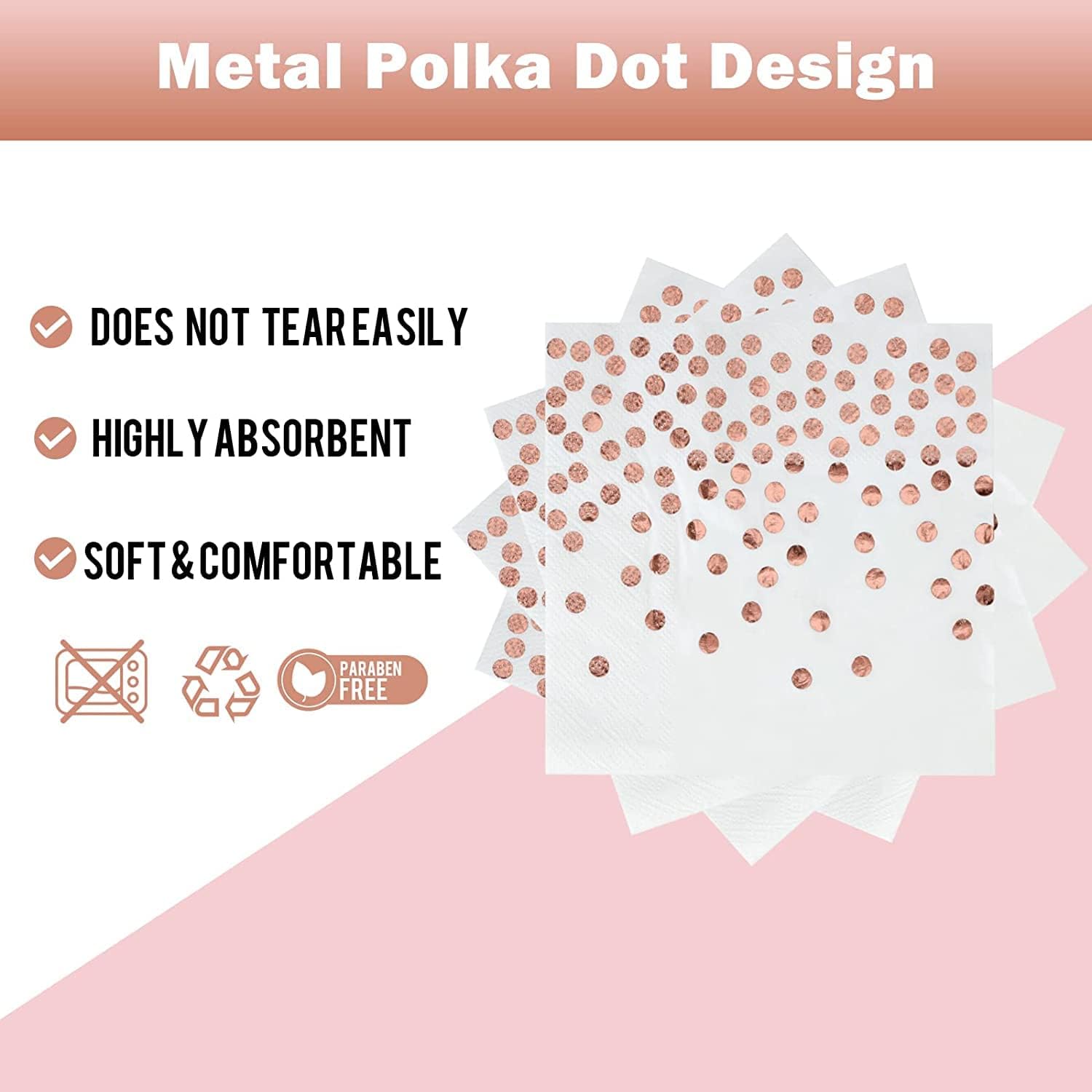 - 2.【Foil Polka Dot Design】:These white rose party paper plates and napkins are all designed with rose gold foil polka dots,which is very stylish and beautiful with bright and attractive colors,everyone will like this elegant design,and have a good time!NOTE:Please don't microwave the plates and napkins