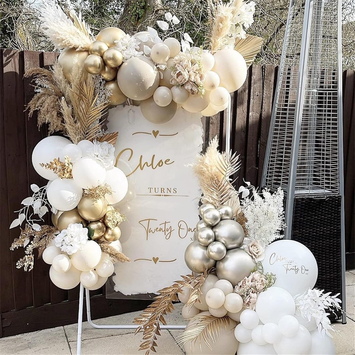 - 🎊 Premium Material 🎊 - The beige white sand gold party balloons kit is made of high-quality natural latex, non-toxic and durable, thick and long-lasting, not easy to burst. They can be filled with air or helium, suggested use with a balloon pump.