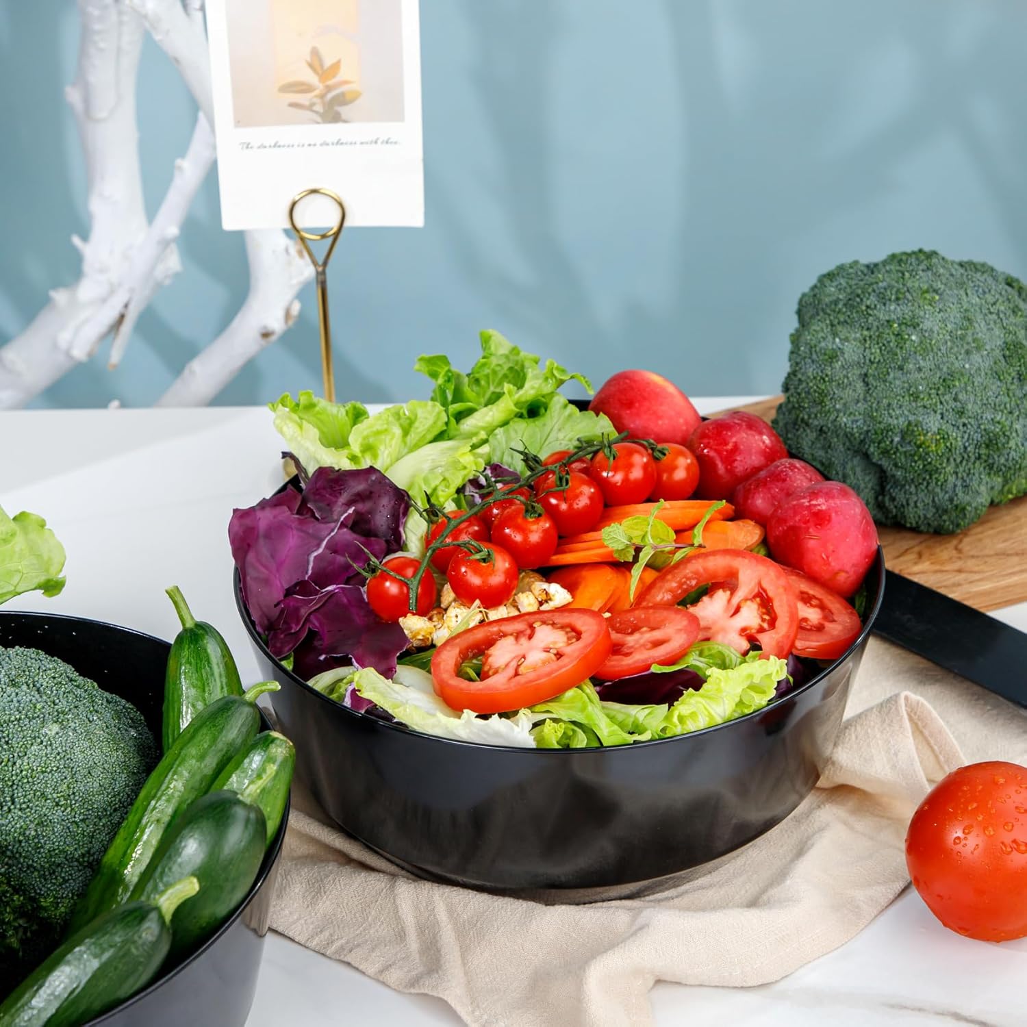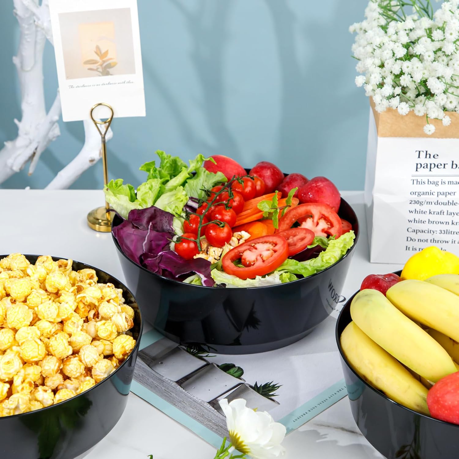 - EXQUISITE DESIGN - These black party bowls have a elegant classic design and handled by strictly quality control,makes the plastic bowls are much stronger that regular ones.The black fruit bowls are matching fancy tableware in order to make your guest get satisfied.