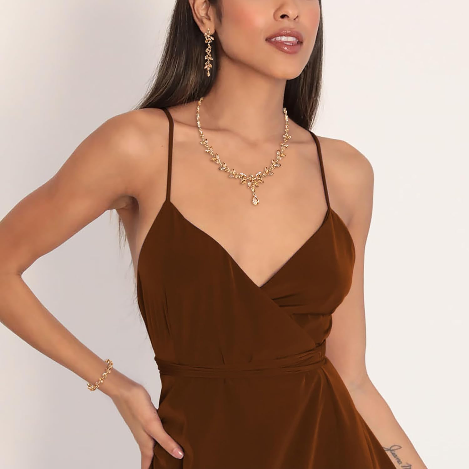 - Leaves have provided our designers a great deal to emulate in the way of shapes, textures, and colors of our jewelry. This wedding jewelry set can be worn with classy casual or formal attire. Wearing a strapless dinner dress, formal gown or casual wear, matching this gorgeous necklace earrings bracelet set, it will make you more eye-catching in wedding ceremony, reception, party, dance and other gorgeous events.