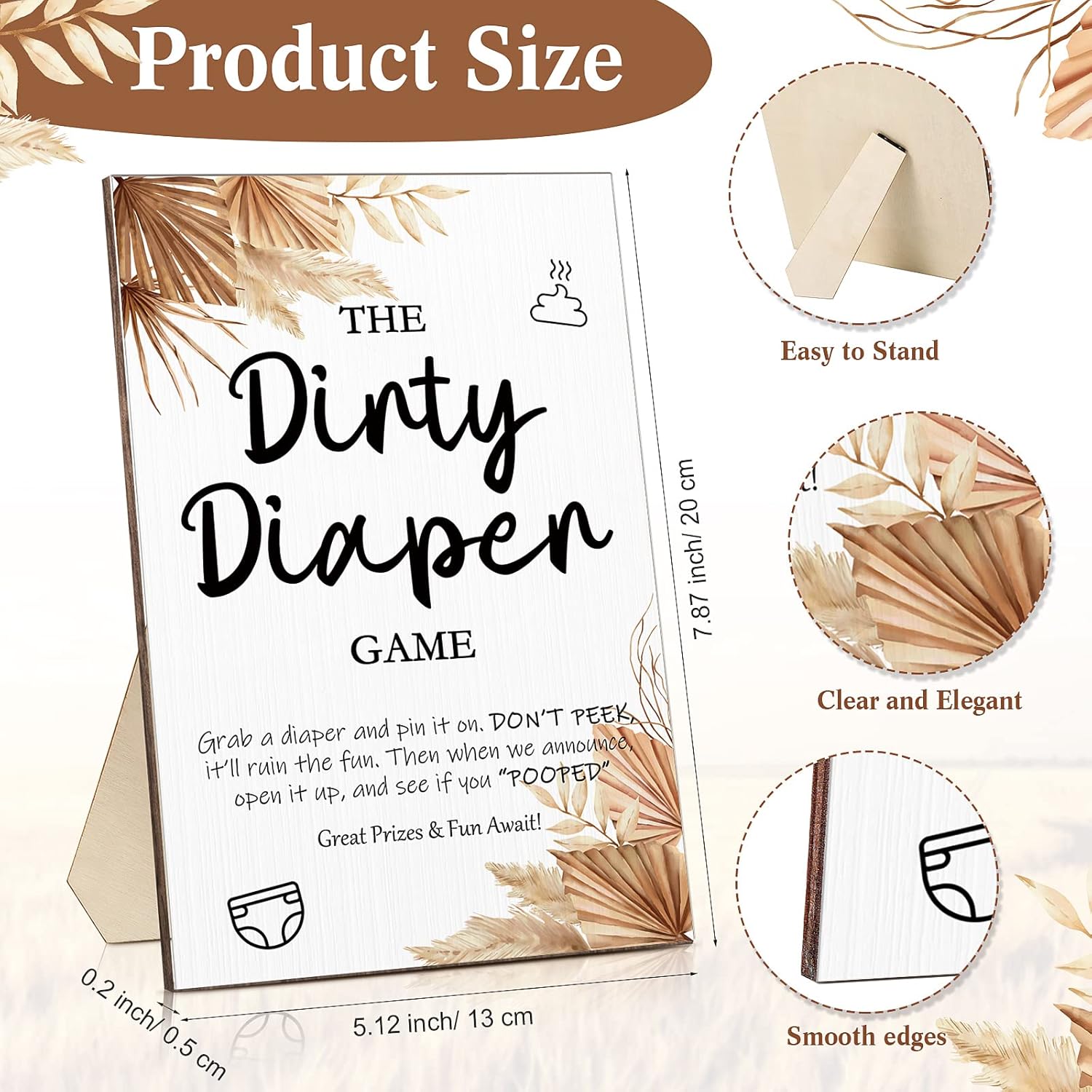 - Size for Easy Using: the Boho wooden baby shower game decor is approx. 5.12 x 7.87 x 0.2 inches/ 13 x 20 x 0.5 cm, with a holder on the back, easy to stand on the table; The mini felt diapers are approx. 3.15 x 2.36 inches/ 8 x 6 cm, lightweight and compact, easy for you to grasp during the party game