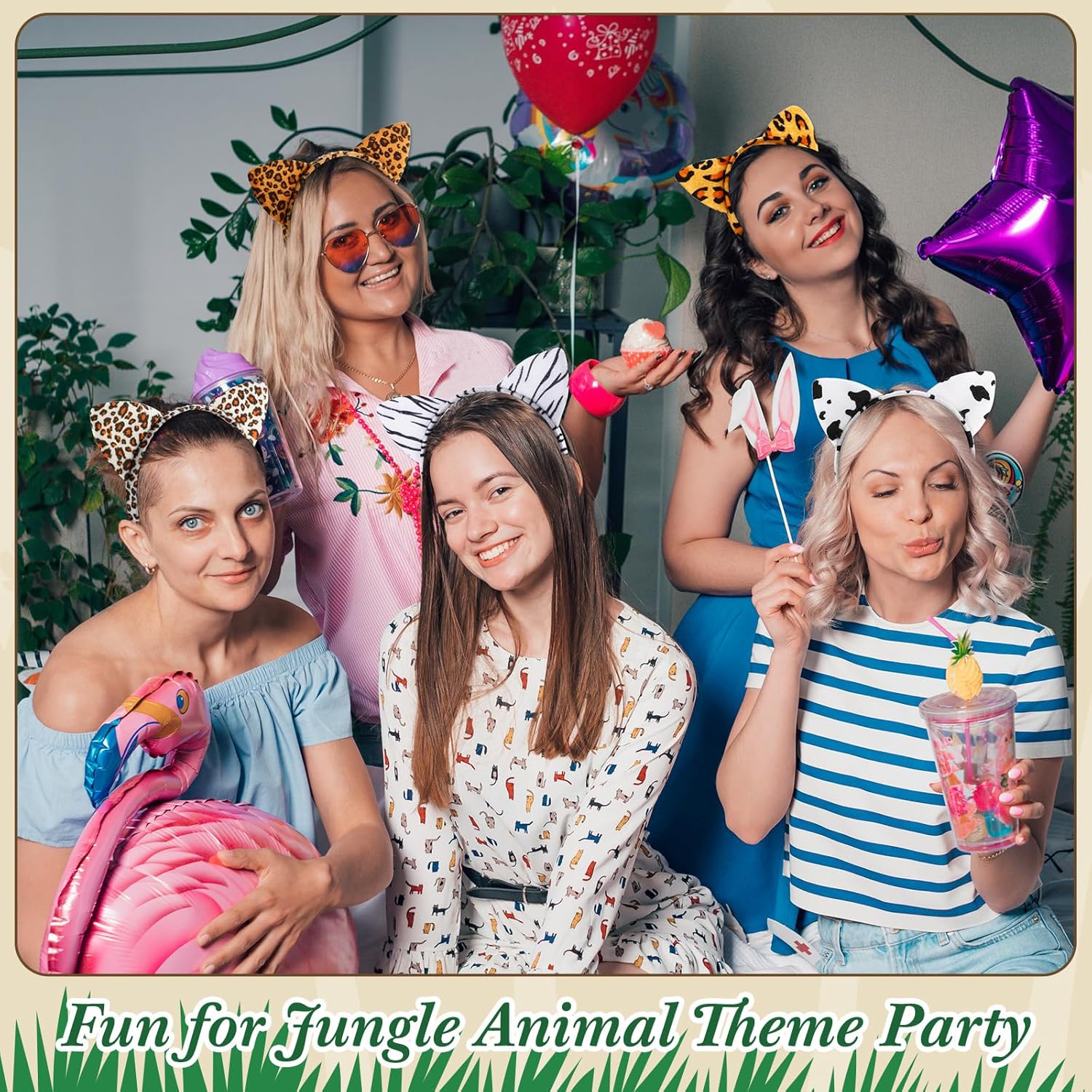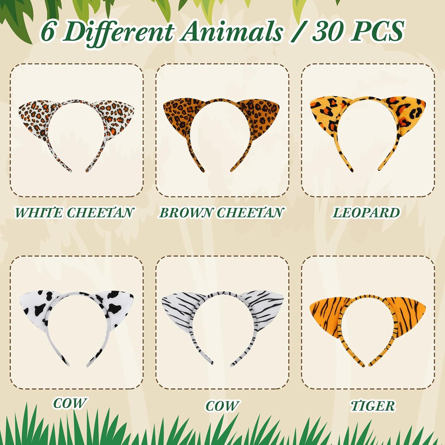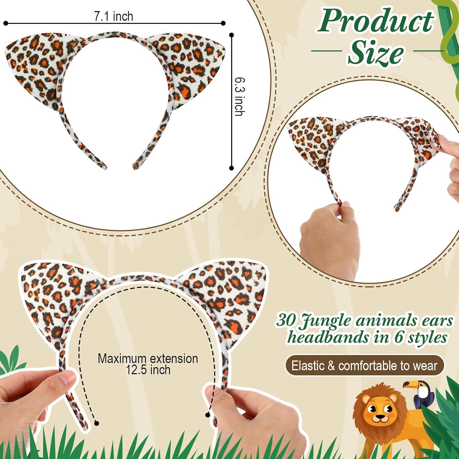 Kigeli 30 Pcs Jungle Animal Safari Ears Headbands for Hair Hoops Photo Booth Props One Birthday Halloween Favors