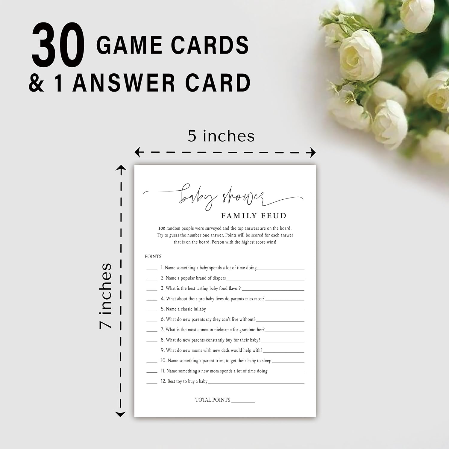 Family Feud Baby Shower Game - Pack of 30 Cards, Answer Key, Gender Neutral Decorations, Feud Game Supplies