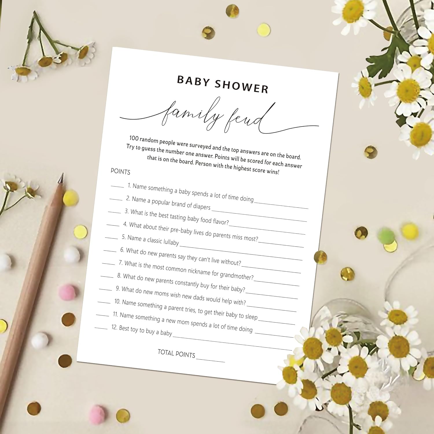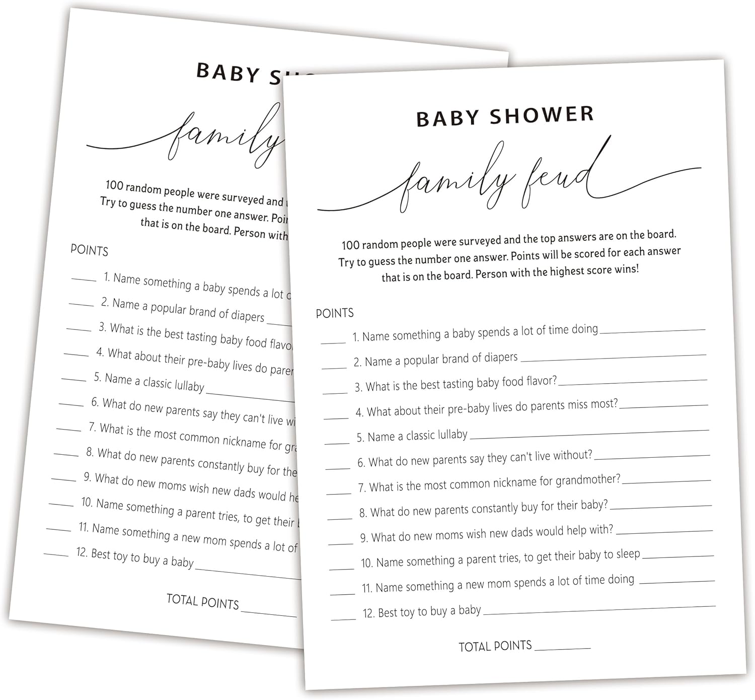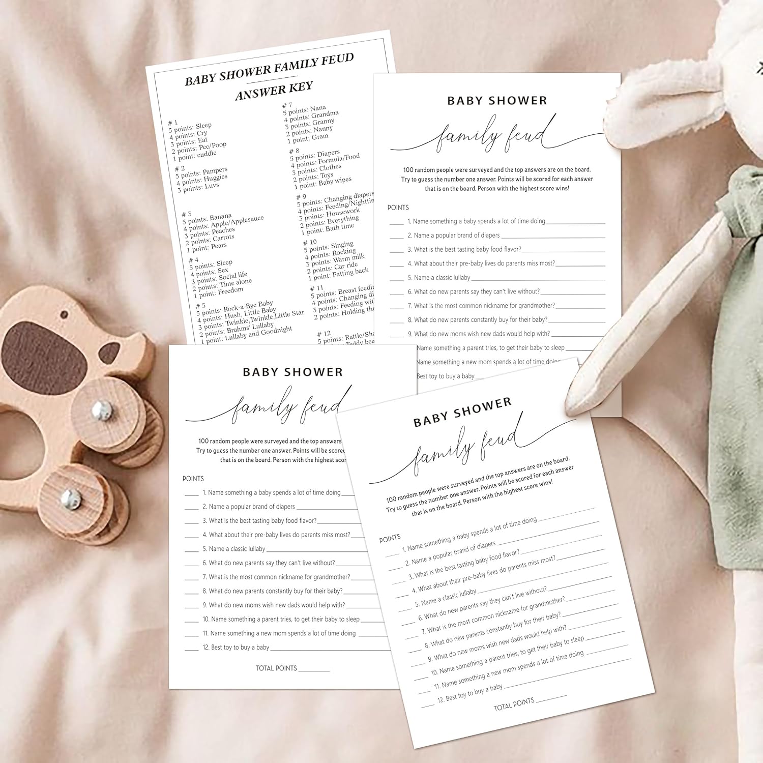 Family Feud Baby Shower Game - Pack of 30 Cards, Answer Key, Gender Neutral Decorations, Game Supplies