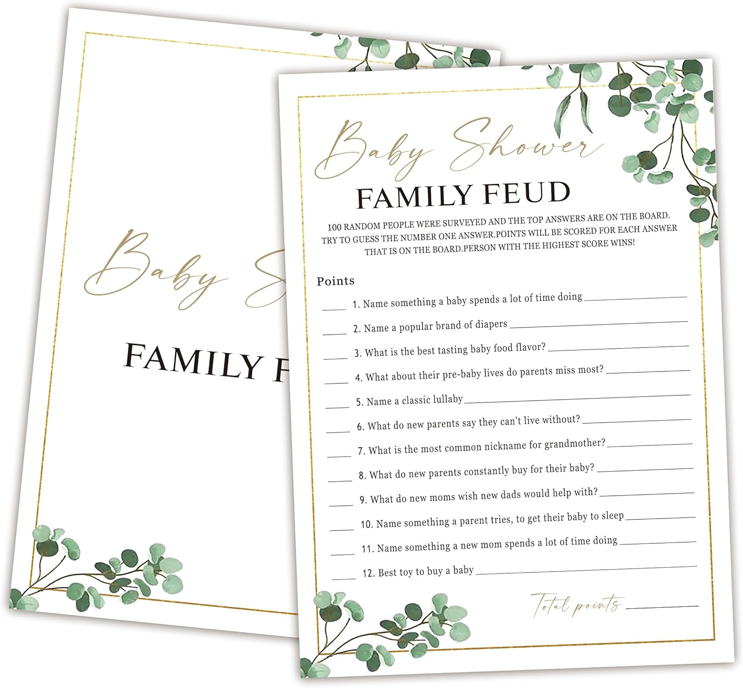 Family Feud Baby Shower Game - Pack of 30 Cards, Answer Key, Greenery Decorations, Feud Game Supplies-04