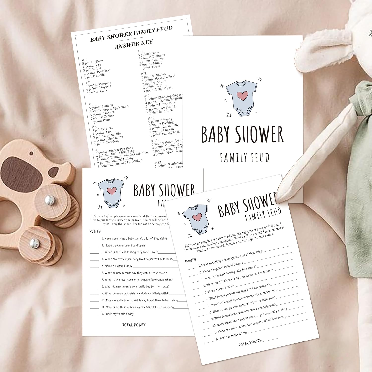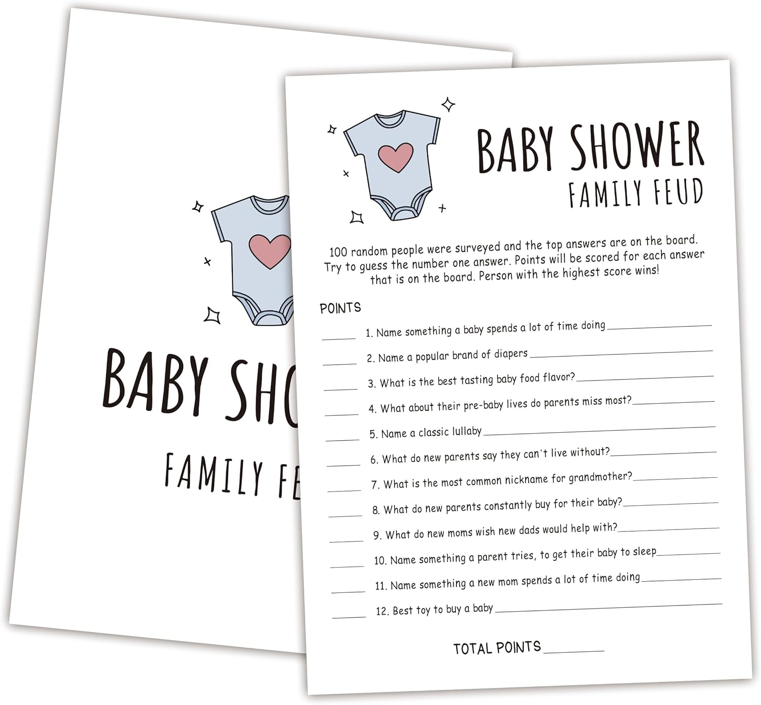 Family Feud Baby Shower Game - Pack of 30 Cards, Answer Key, Boy & Girl Themed, Decorations & Supplies
