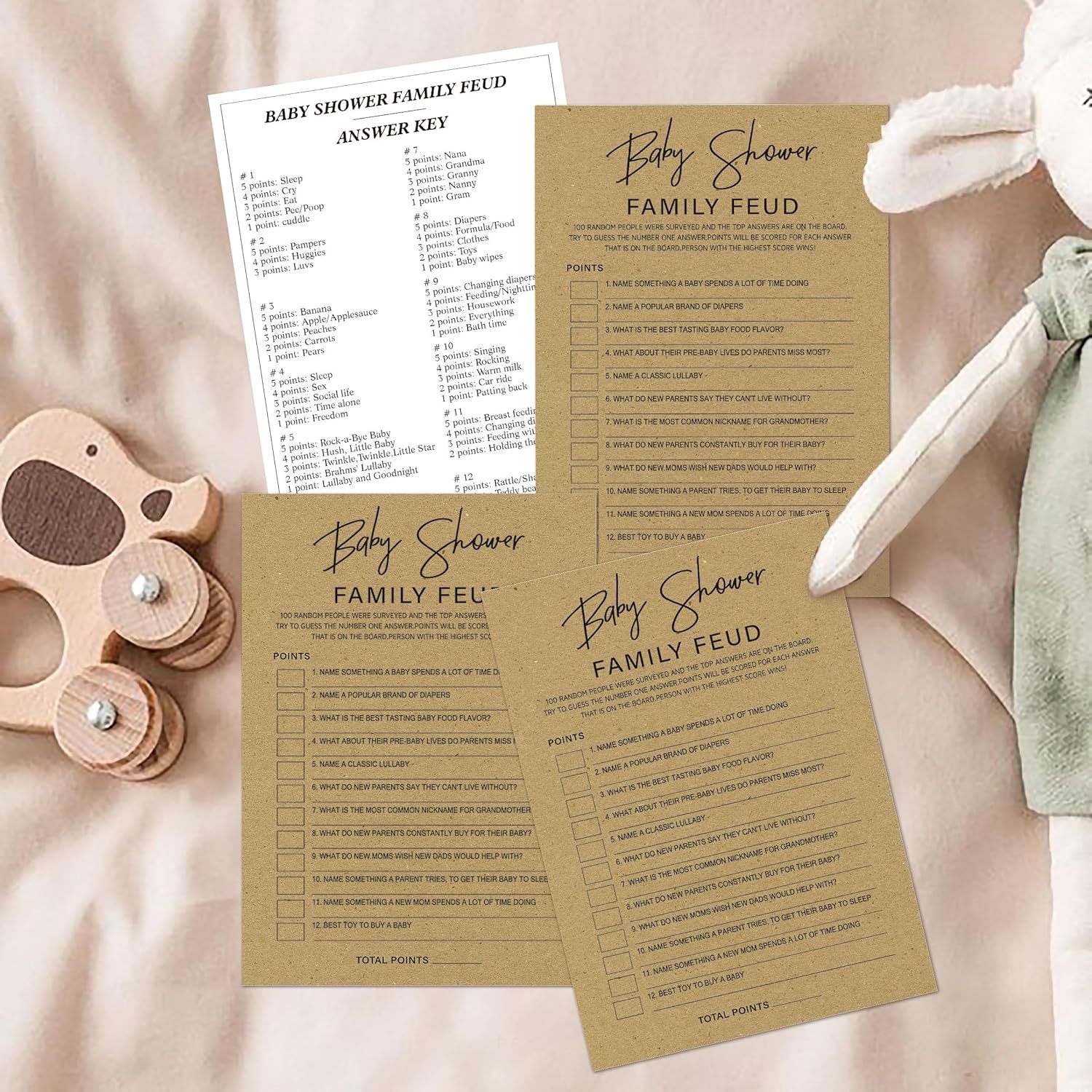 Family Feud Baby Shower Game - Pack of 30 Cards & Answer Key, Gender Neutral Decorations & Supplies