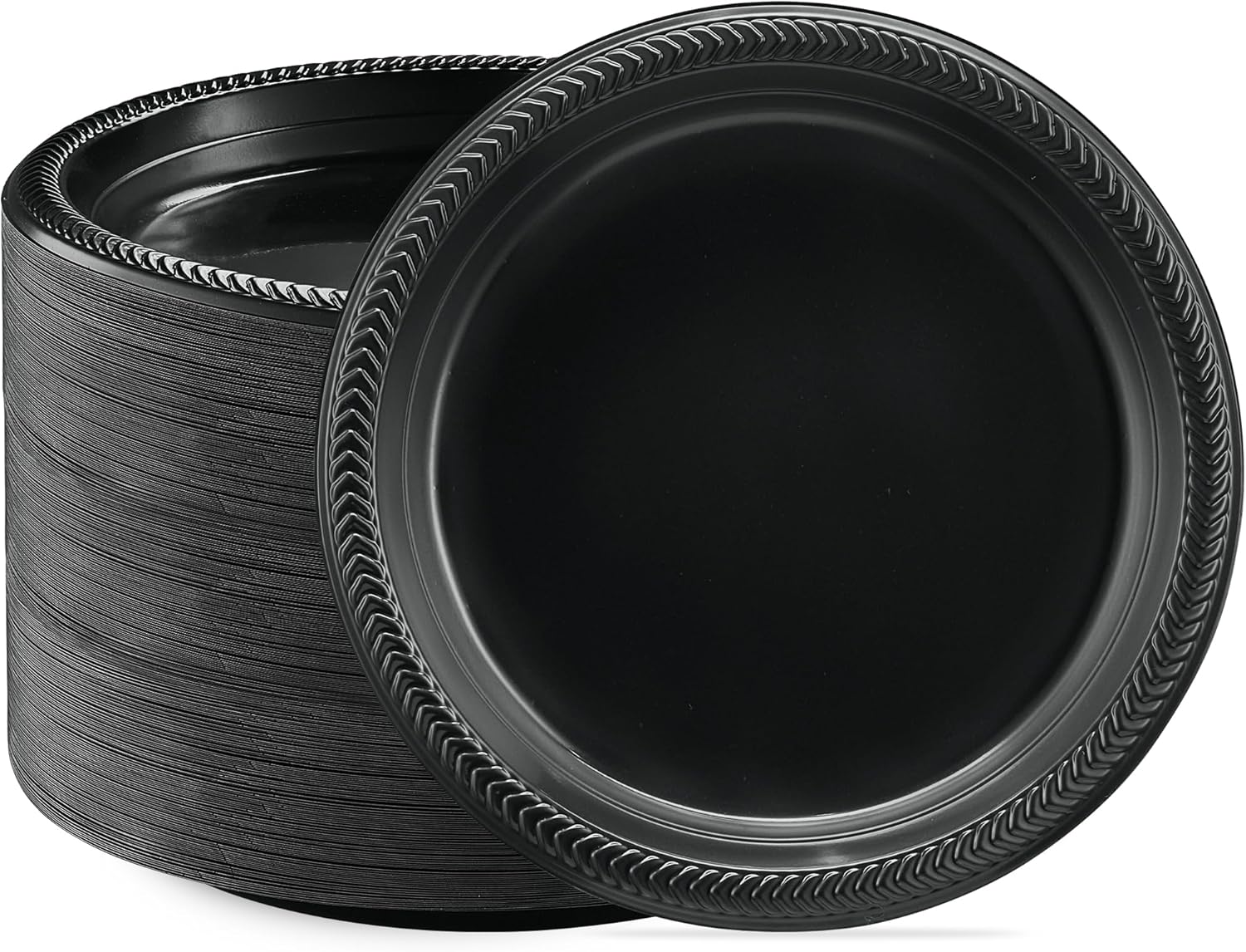 - Black plastic 9 inch round dinner plates 400 pack are great for use for appetizer, salad, dinner, or luncheon plates. Great for parties, bbq, dinner, birthday party, and weddings.