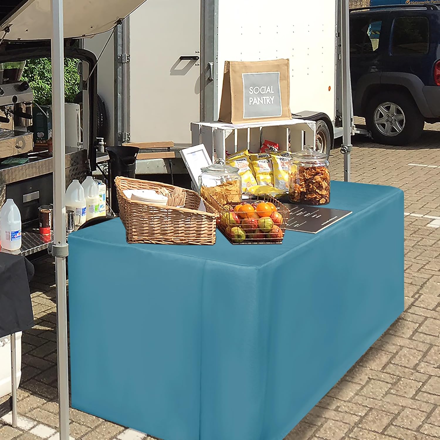 HolidayIdeas Fitted Table Covers for 6 Foot Tables - 72 x 30 Inch - 2 Pack Rectangle Teal Table Clothes Polyester Fabric Table Cover for Folding Table, Parties, Birthday, Vendor Stand, Trade Show