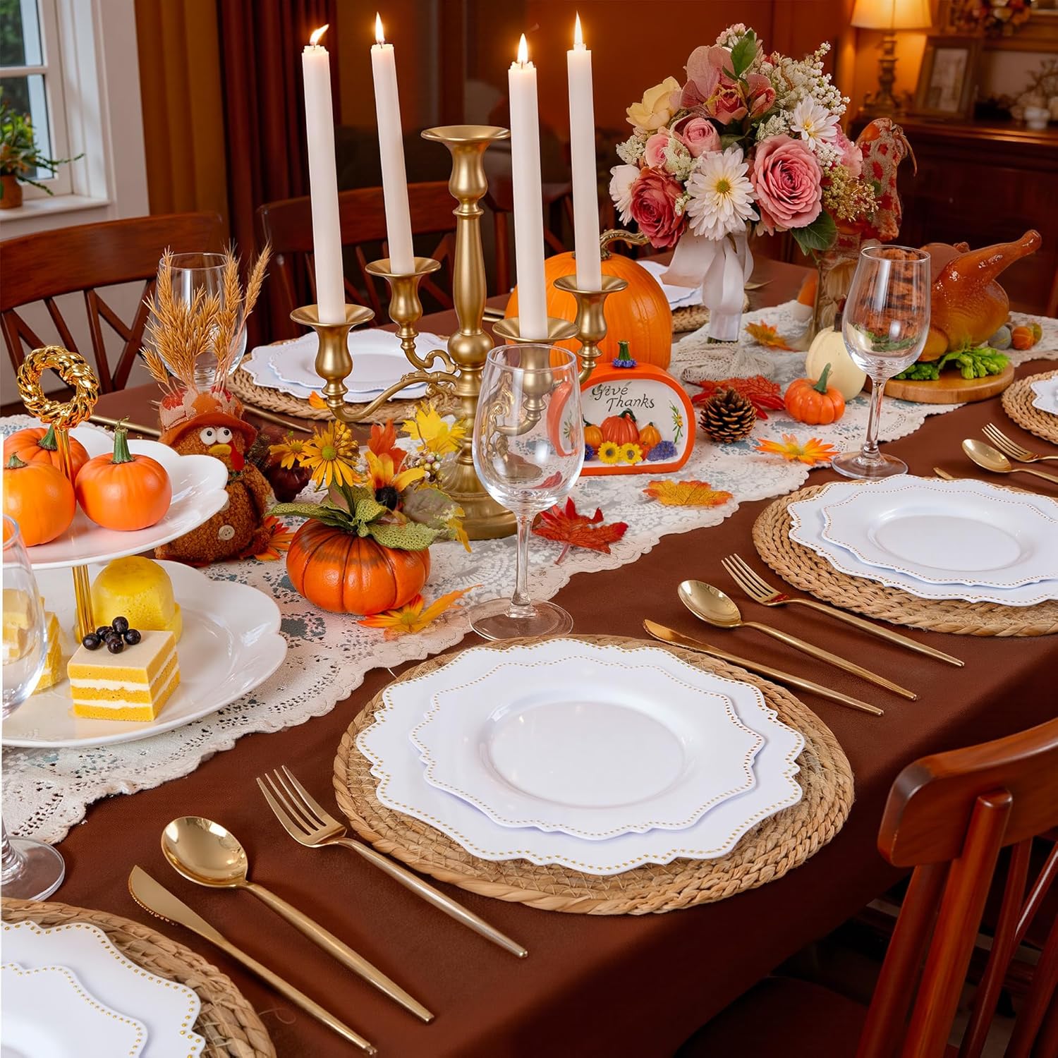 - USE OCCASIONS: Perfect Combination Dinnerware Set Good for Any Party. Disposable Plastic Plates Looks Like china. Gold Plastic Knife Fork Spoon Looks Like Metal. Good For Wedding, Christmas, Birthday, Dinner, Business, Tea, Graduation, Housewarming , Welcome or Farewell Party. Also Can be Daily Use or Be a Gifts for Your Lovers.
