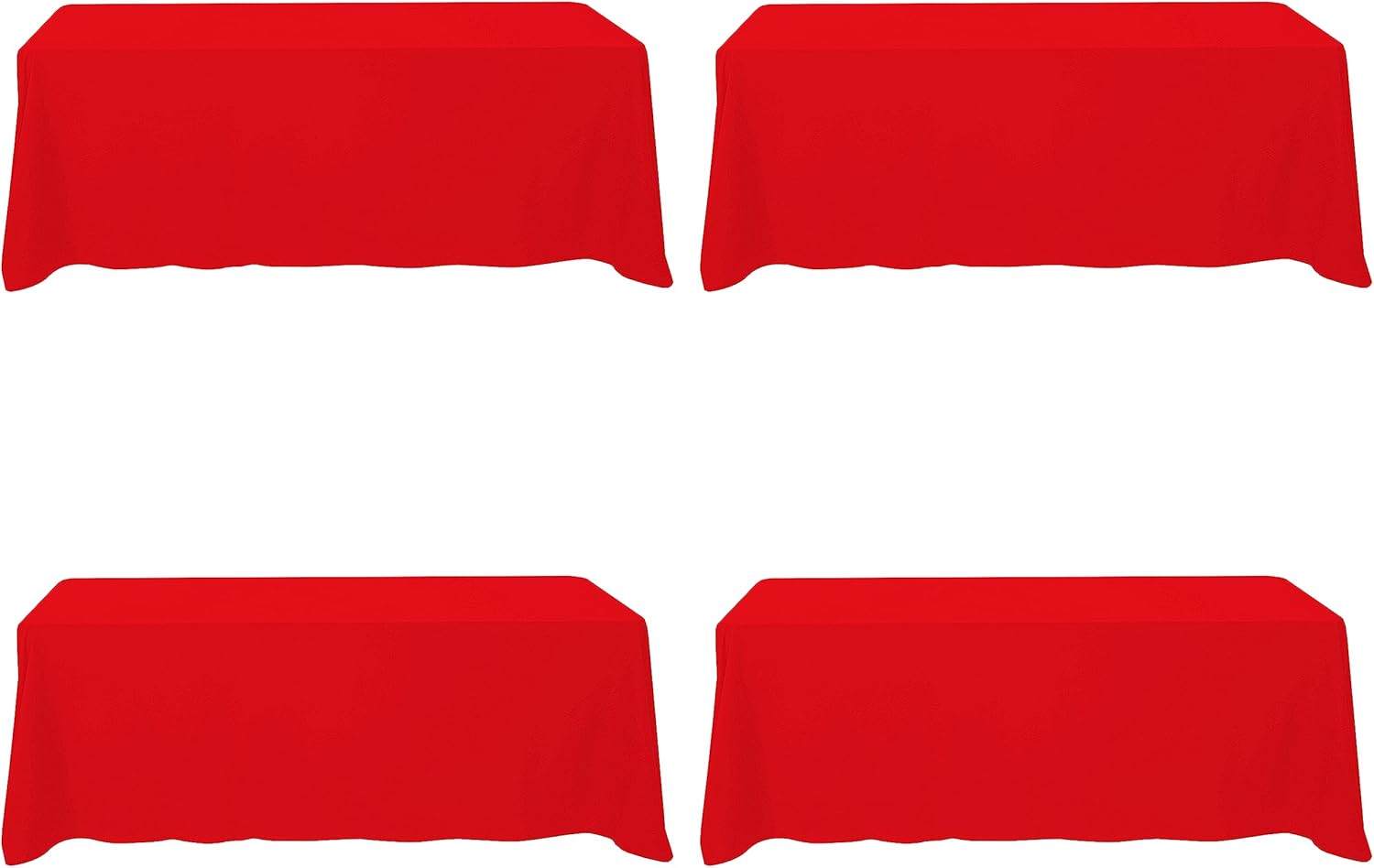 BRILLMAX 4 Pack Red Tablecloths for 8 Foot Rectangle Tables 90 x 156 Inch - 8ft Rectangular Bulk Linen Polyester Fabric Washable Cloth Cover for Wedding Reception Banquet Birthday Party