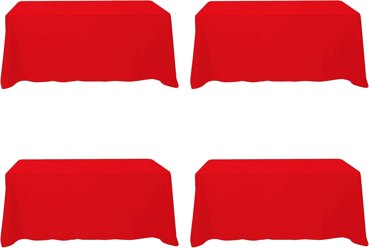 BRILLMAX 4 Pack Red Tablecloths for 6 Foot Rectangle Tables 90 x 132 Inch - 6ft Rectangular Bulk Linen Polyester Fabric Washable Cloth Cover for Wedding Reception Banquet Birthday Party