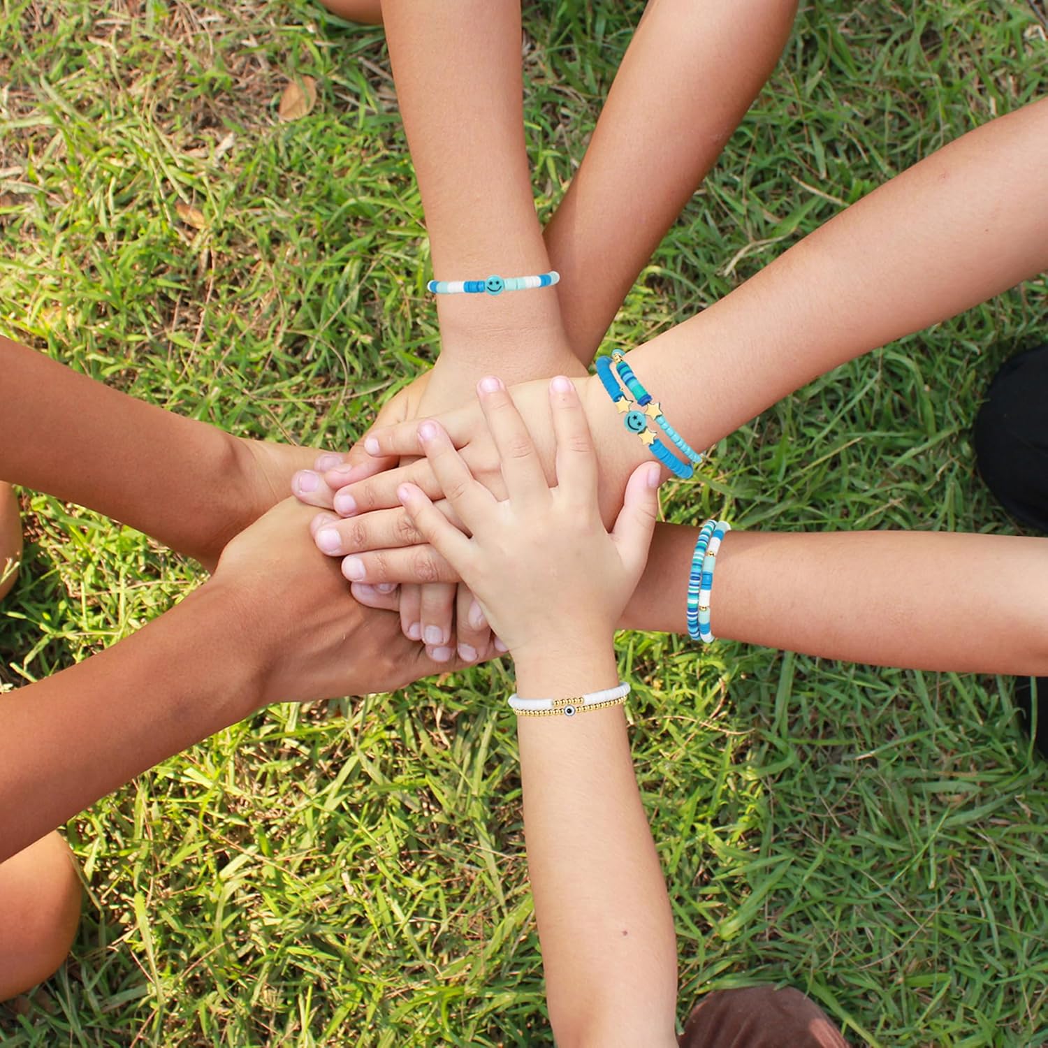 - Design Features: The bracelet set consists of 7 blue bracelets with different styles. It incorporates various special elements, including smiley faces, stars, hearts, golden beads, and white vinyl clay, etc. Each bracelet has a unique charm, showing a rich and diverse preppy style.