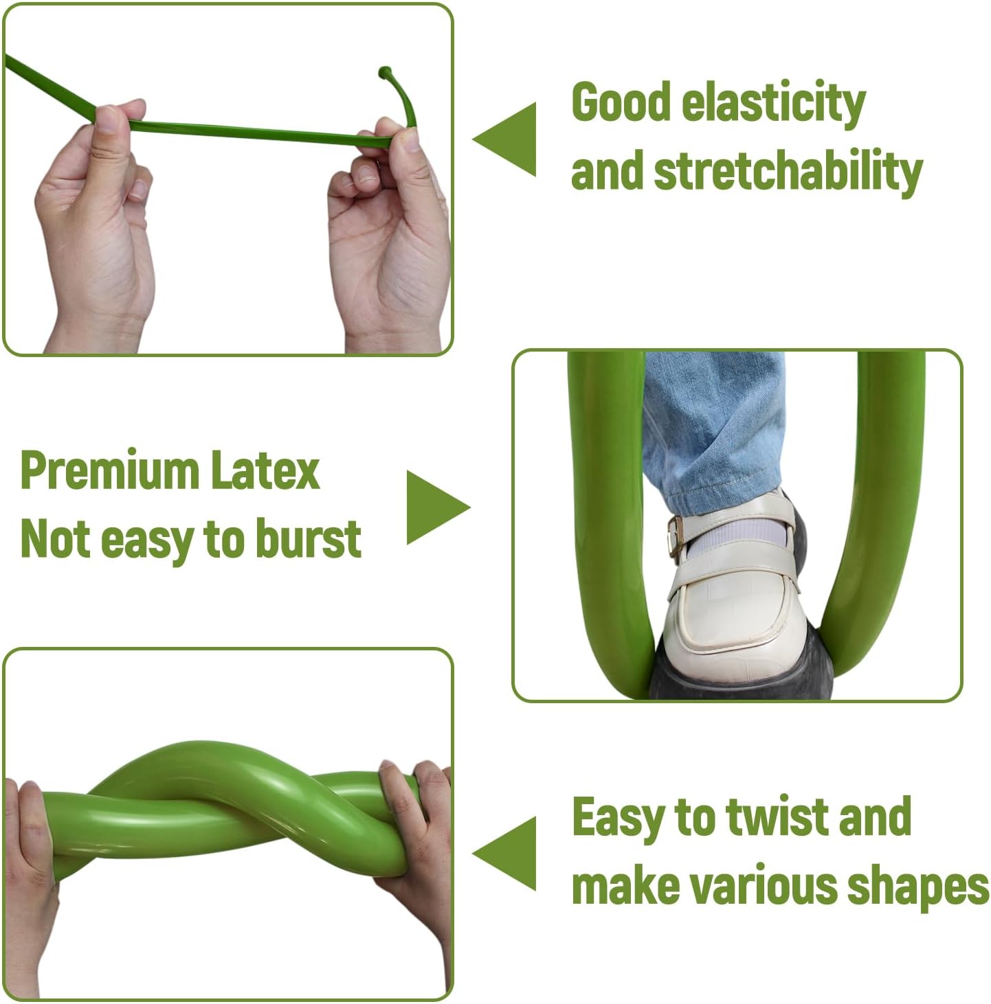 - Included Components : 100pcs green long balloon