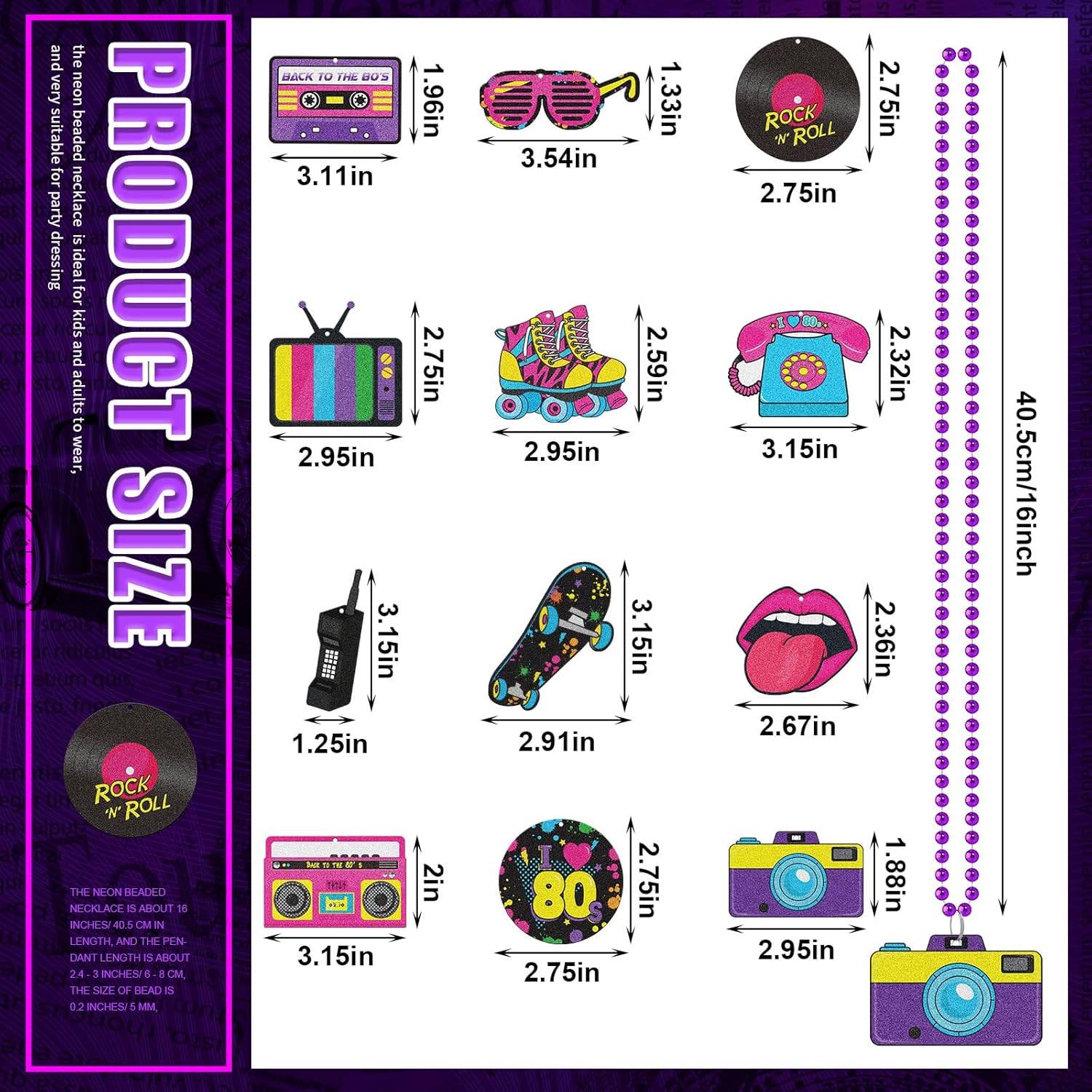 - 80's Theme Design: these retro rock party necklaces are themed at the time of 80s, with a total of 12 pendants designed with rich elements and delicate patterns, the necklaces come in blue, purple, red, yellow, green, etc., bright in colors, and very fit the 80s theme, stylish and exquisite, beautiful colors and interesting designs will warmly welcome all guests